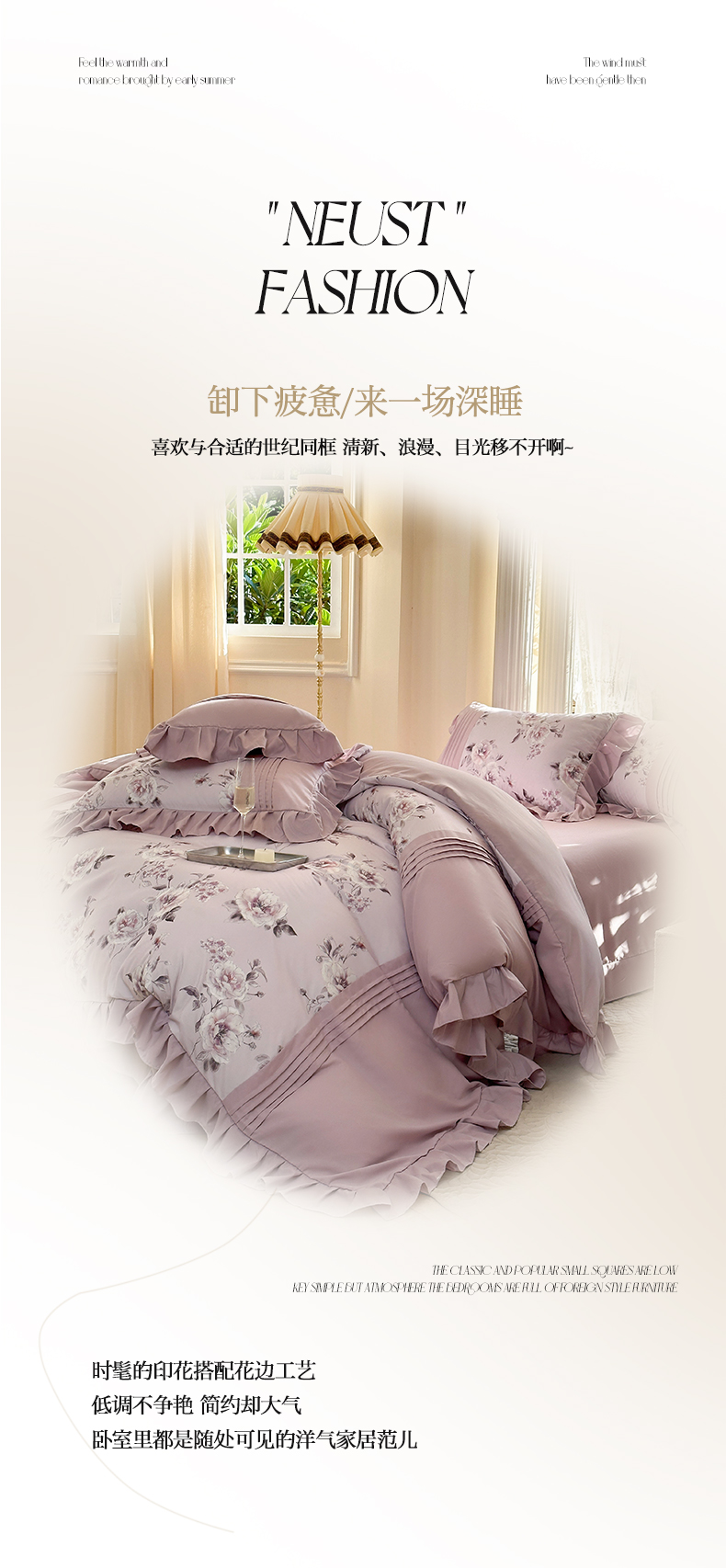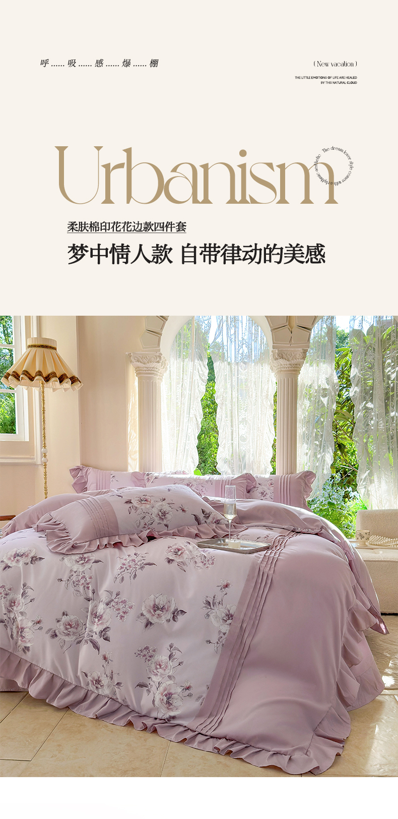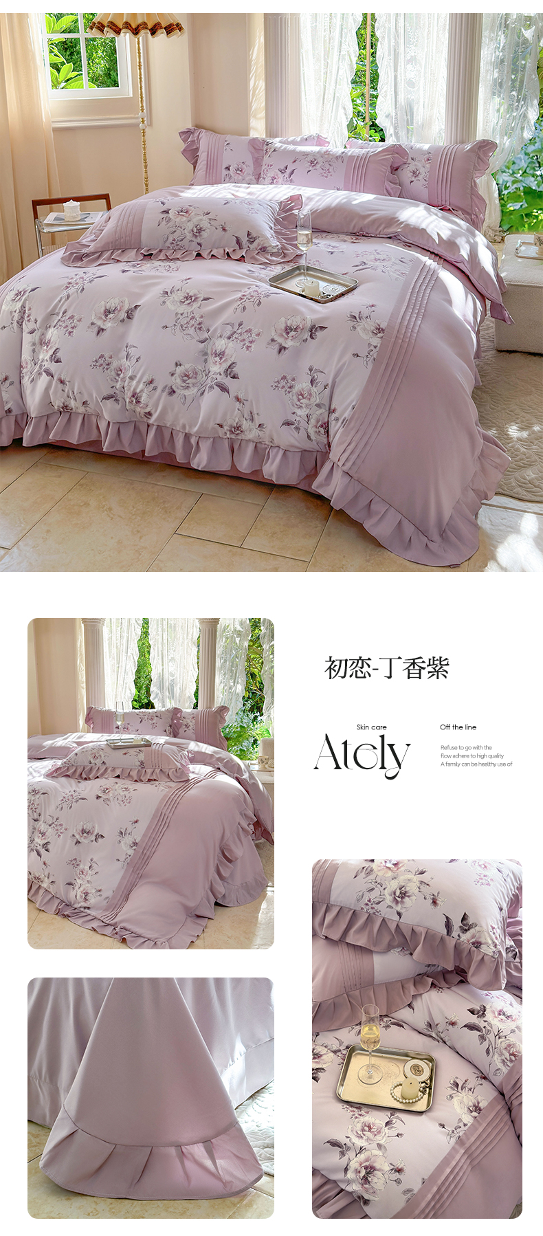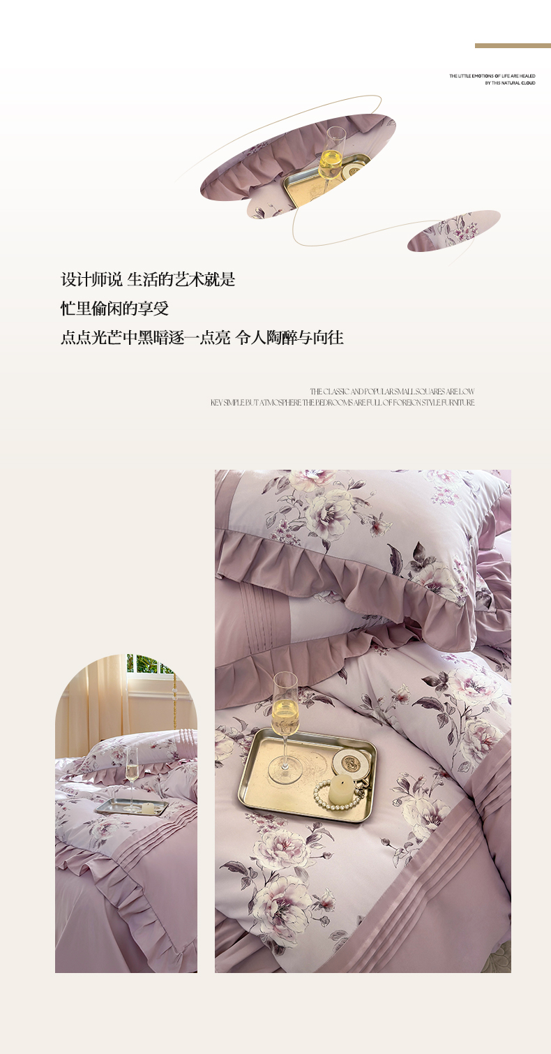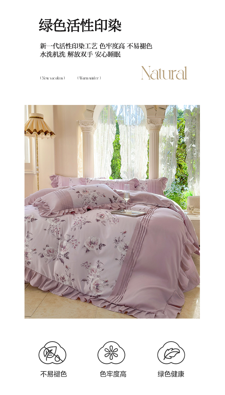 商品名称:豪美鑫 2025新款柔肤棉印花花边四件套-初恋 初恋-丁香紫
