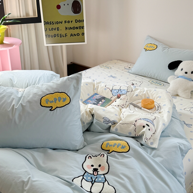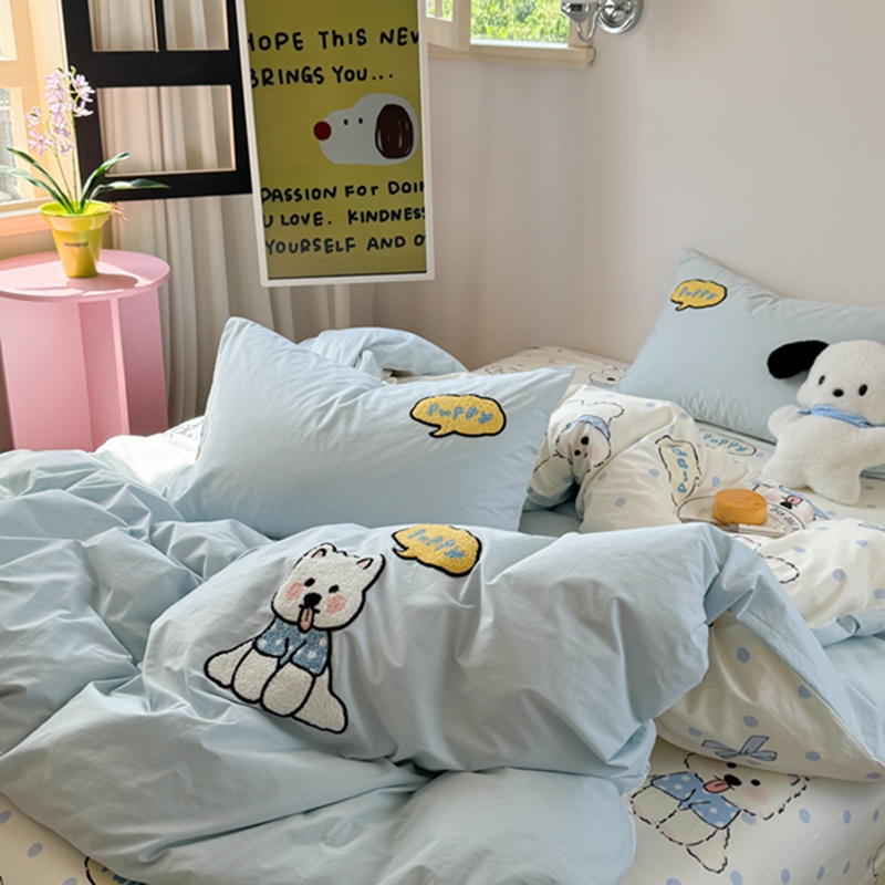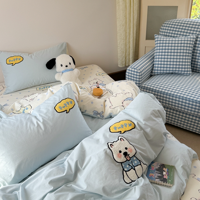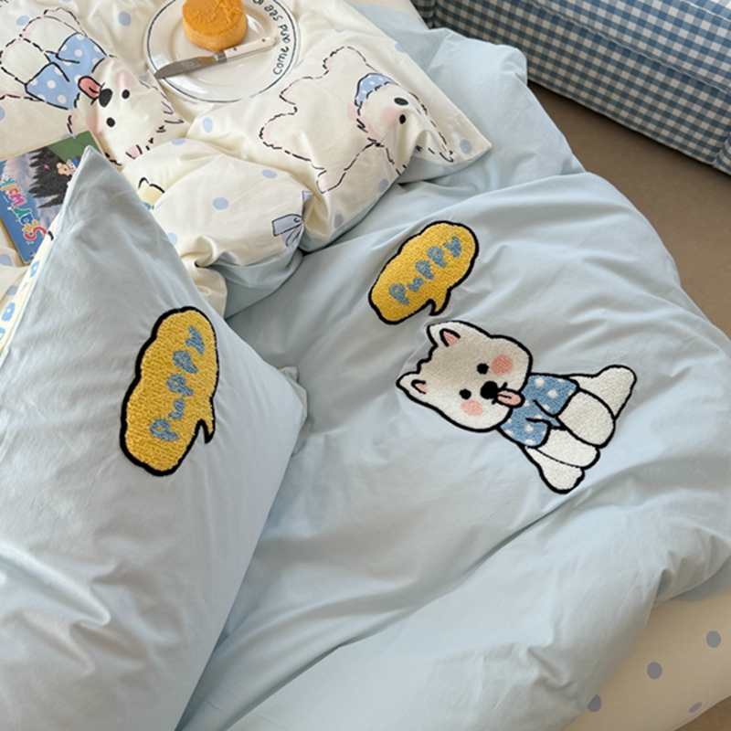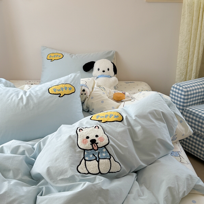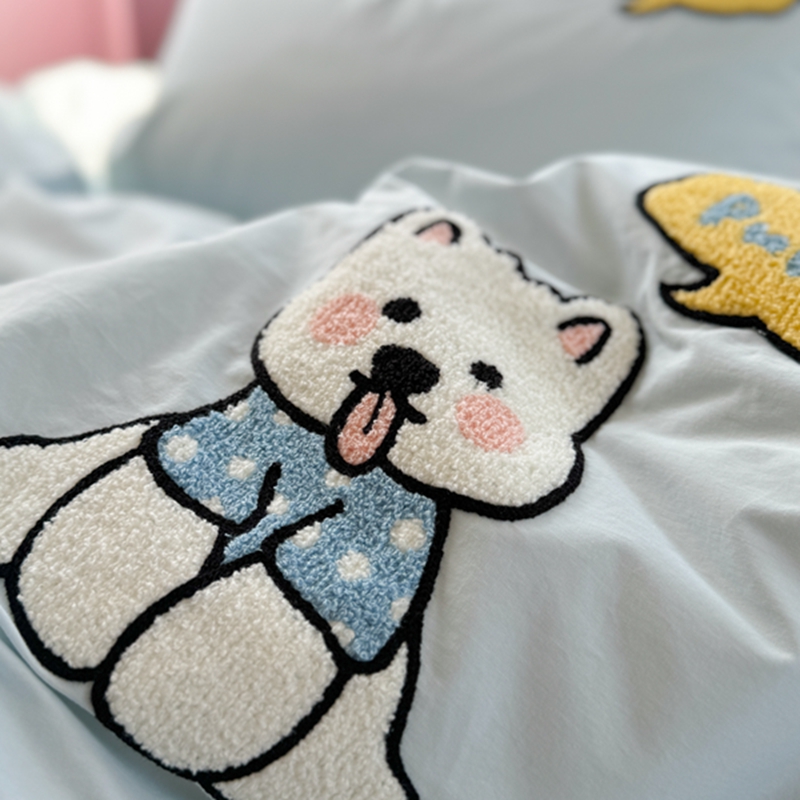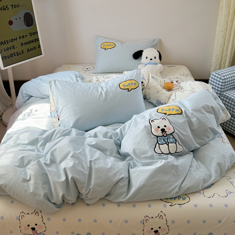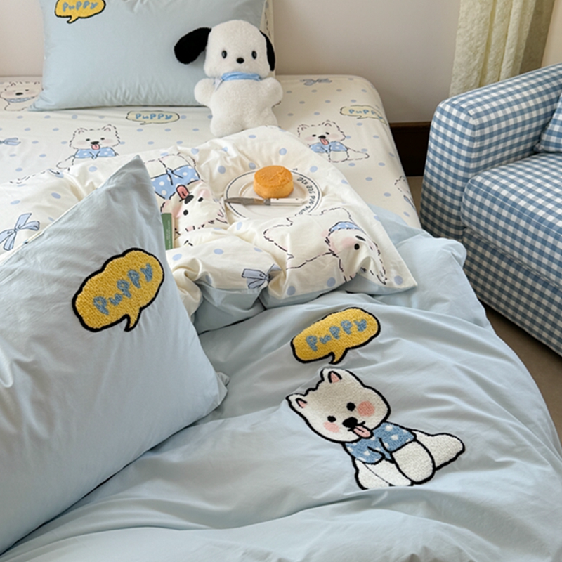 柚子 2024新款全棉水洗印加绣小可爱四件套 西高地