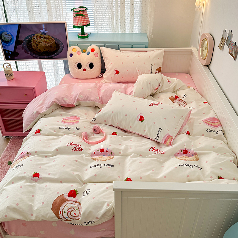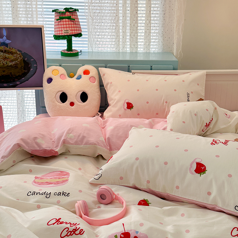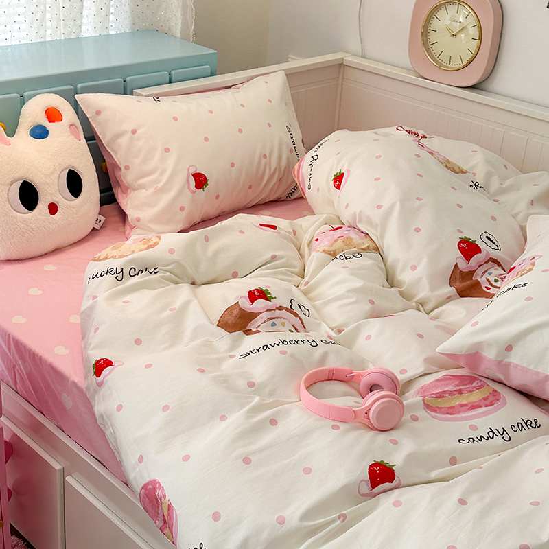 商品名称:昔可家纺 2024新款13372全棉亲肤四件套-卡通系列 草莓瑞士卷