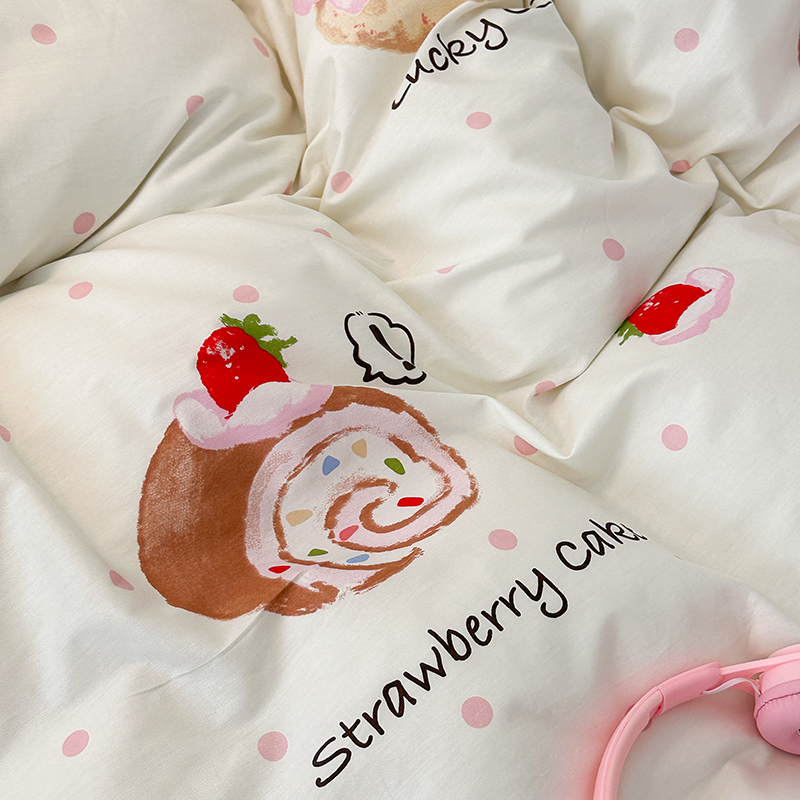 昔可家纺 2024新款13372全棉亲肤四件套-卡通系列 草莓瑞士卷
