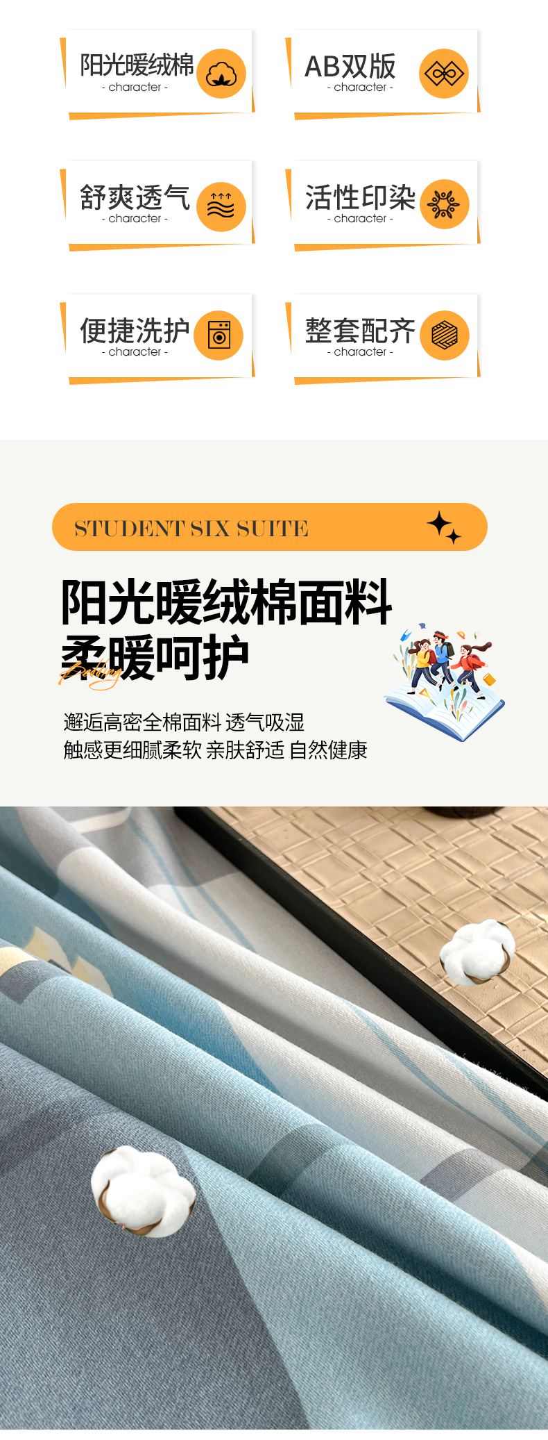 当前位置: 91家纺网 > 商品网购 > 床品套件 > 三件套 > 慕木 2025新款A类印花阳光暖绒棉高克重170克学生宿舍床三件套被芯床垫枕芯上下铺六件套 协奏曲-蓝