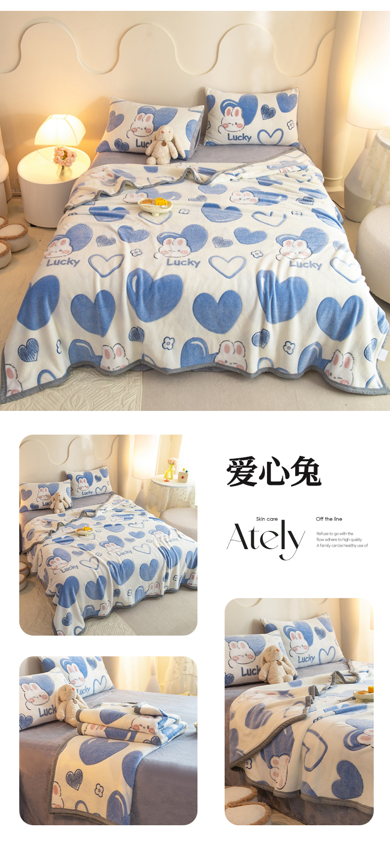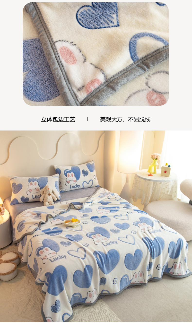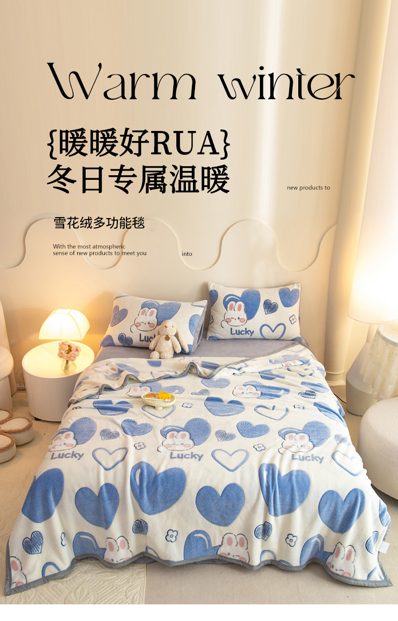 商品名称:慕梵家居 2024新款雪花绒多功能包边毛毯 爱心兔