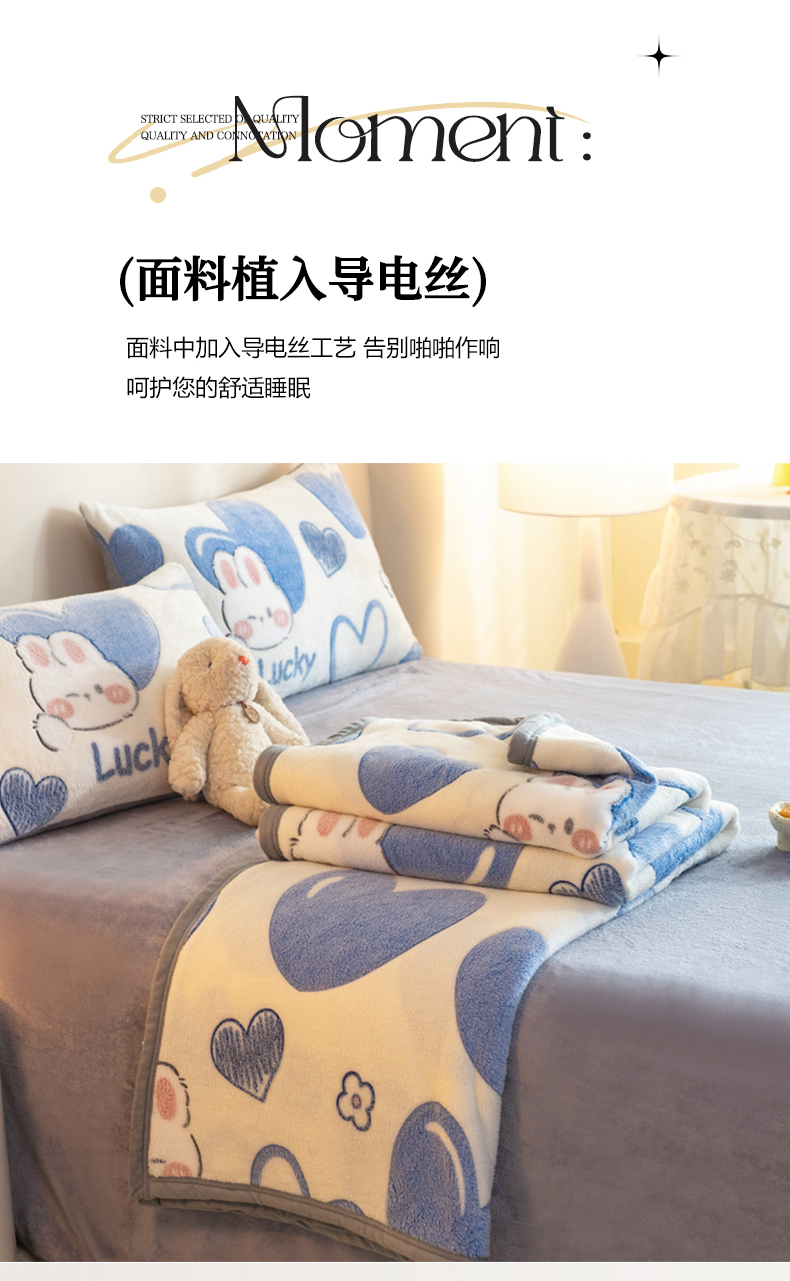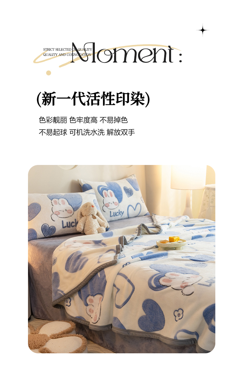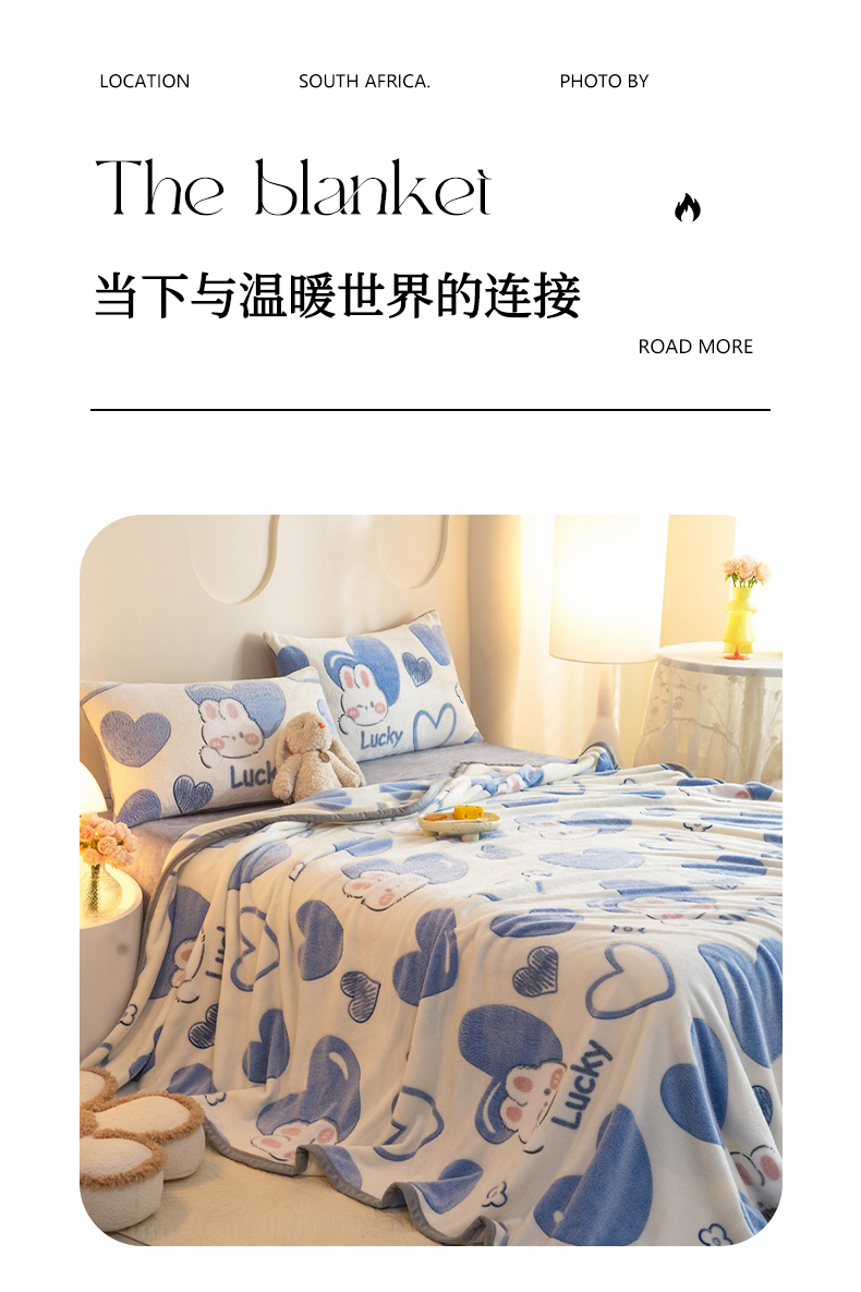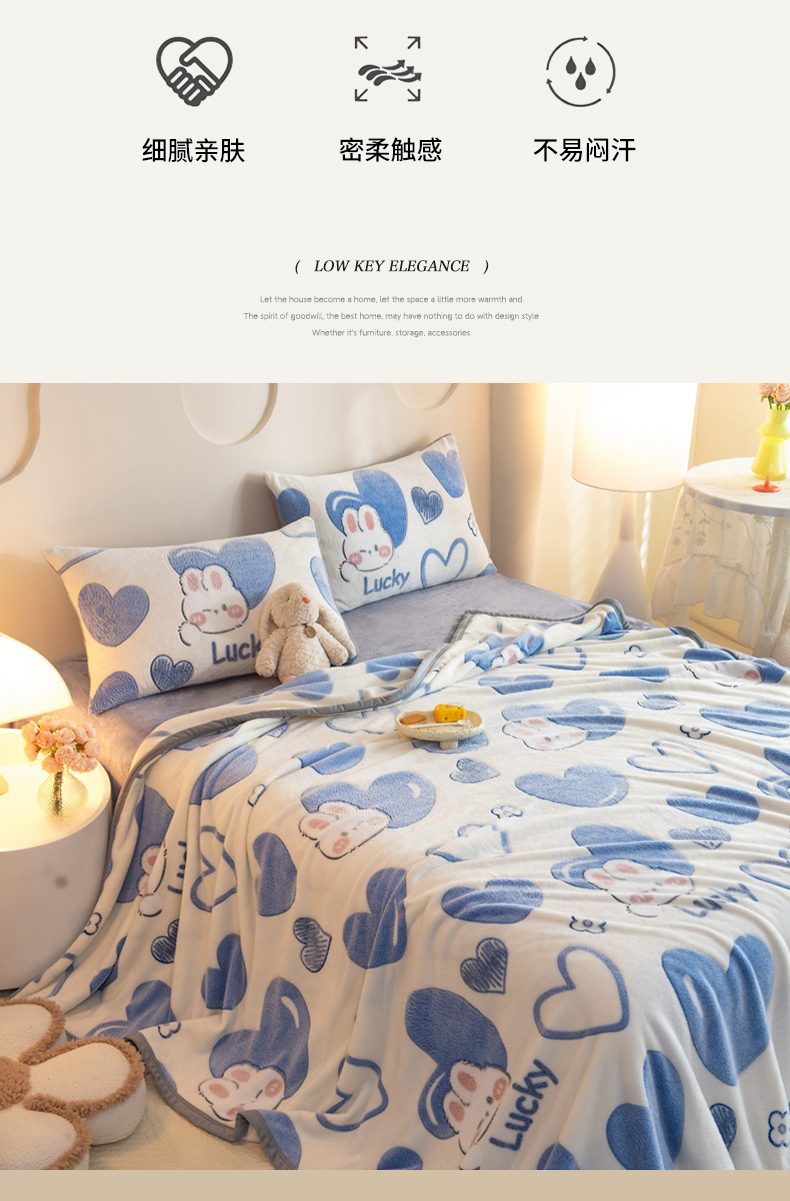 商品名称:慕梵家居 2024新款雪花绒多功能包边毛毯 爱心兔