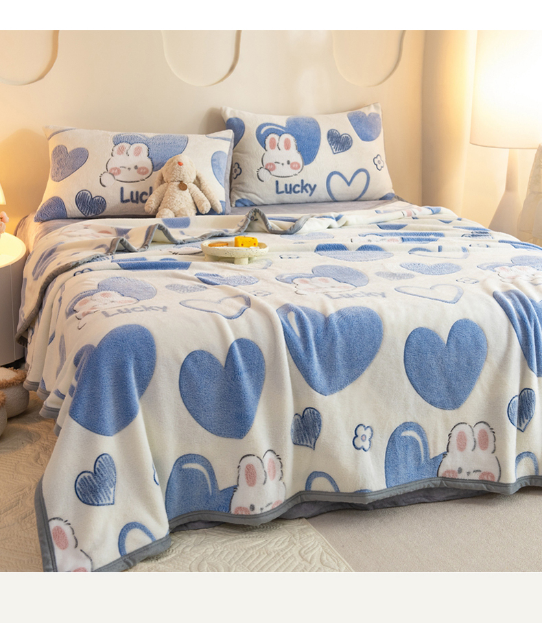 慕梵家居 2024新款雪花绒多功能包边毛毯 爱心兔
