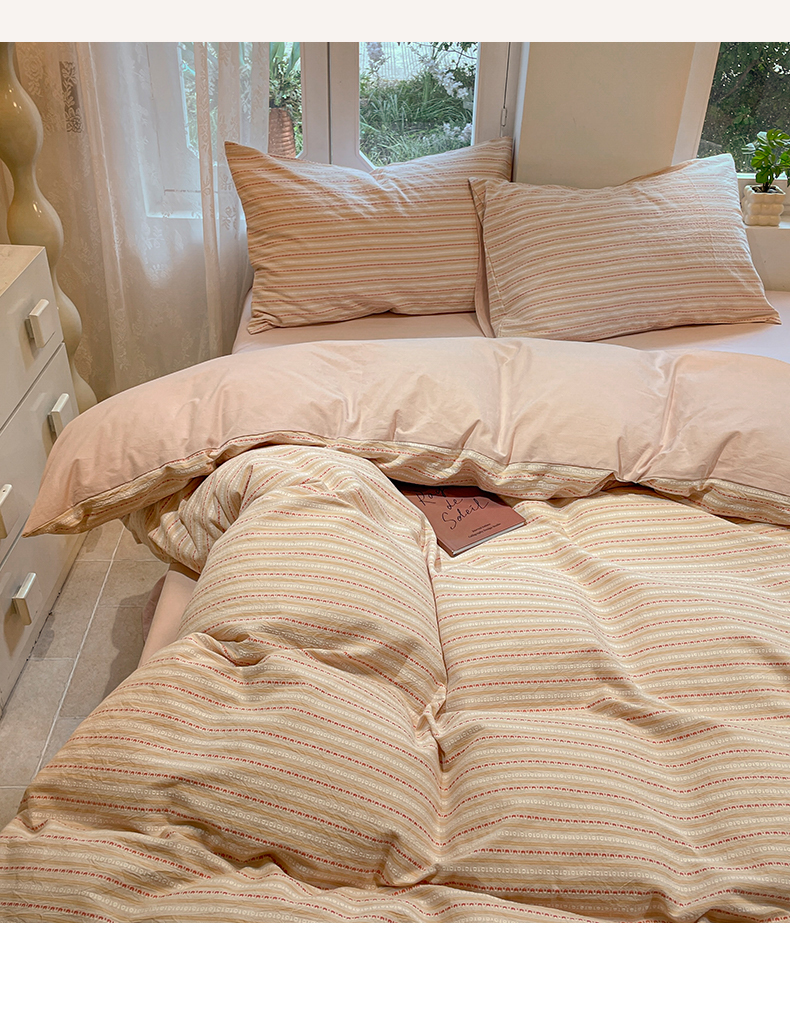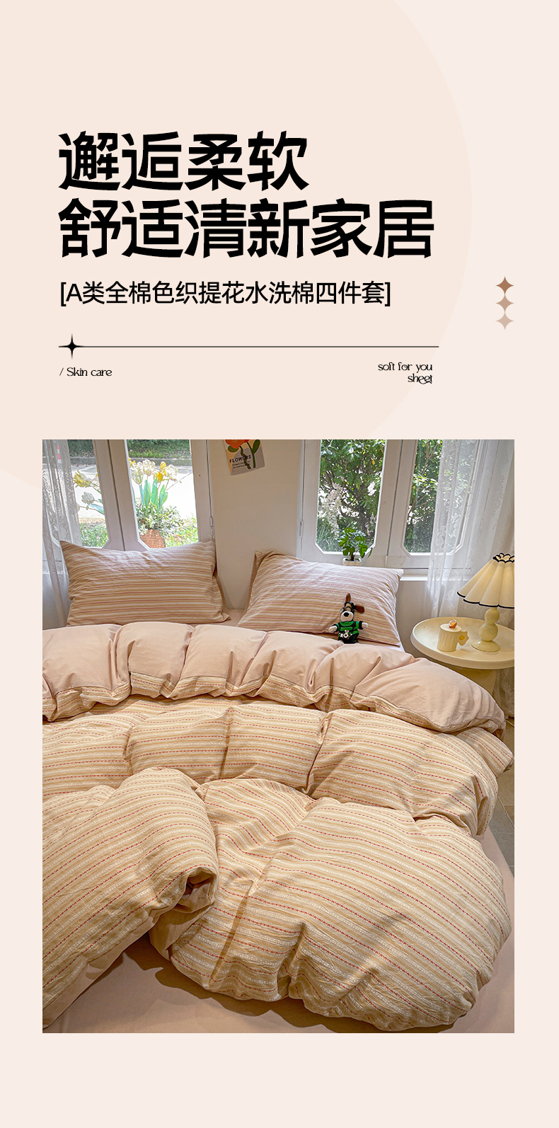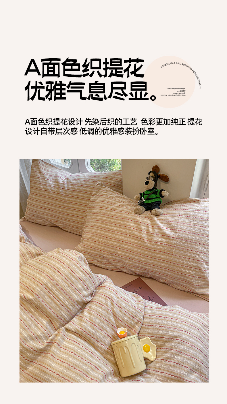 莱茵家居 2024新款色织提花全棉水洗棉四件套 美拉-浅粉
