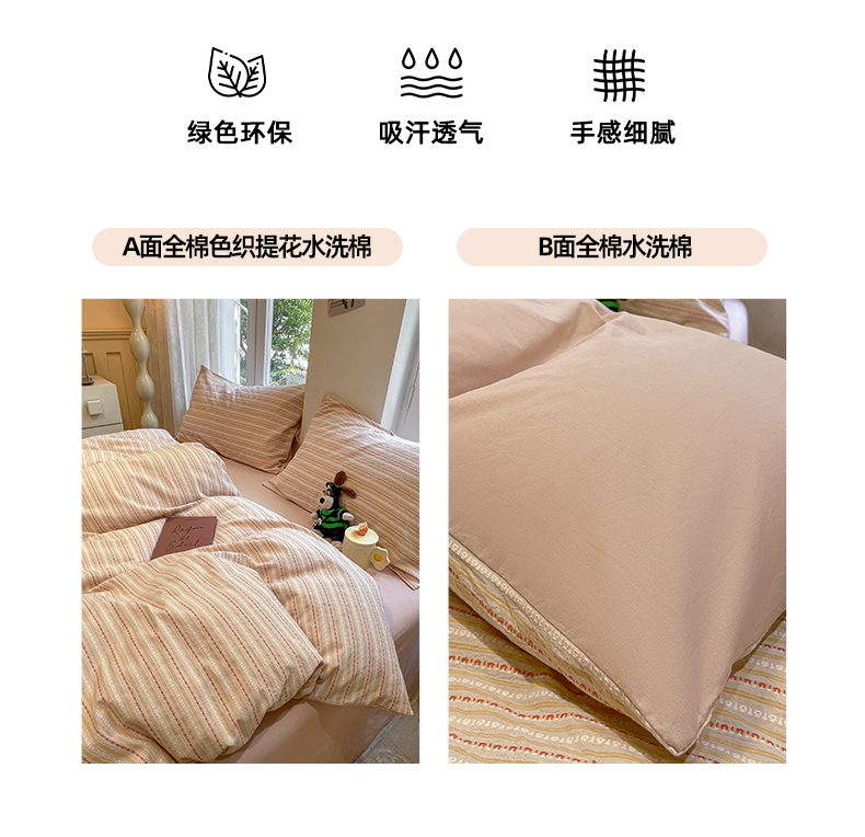 商品名称:莱茵家居 2024新款色织提花全棉水洗棉四件套 美拉-浅粉