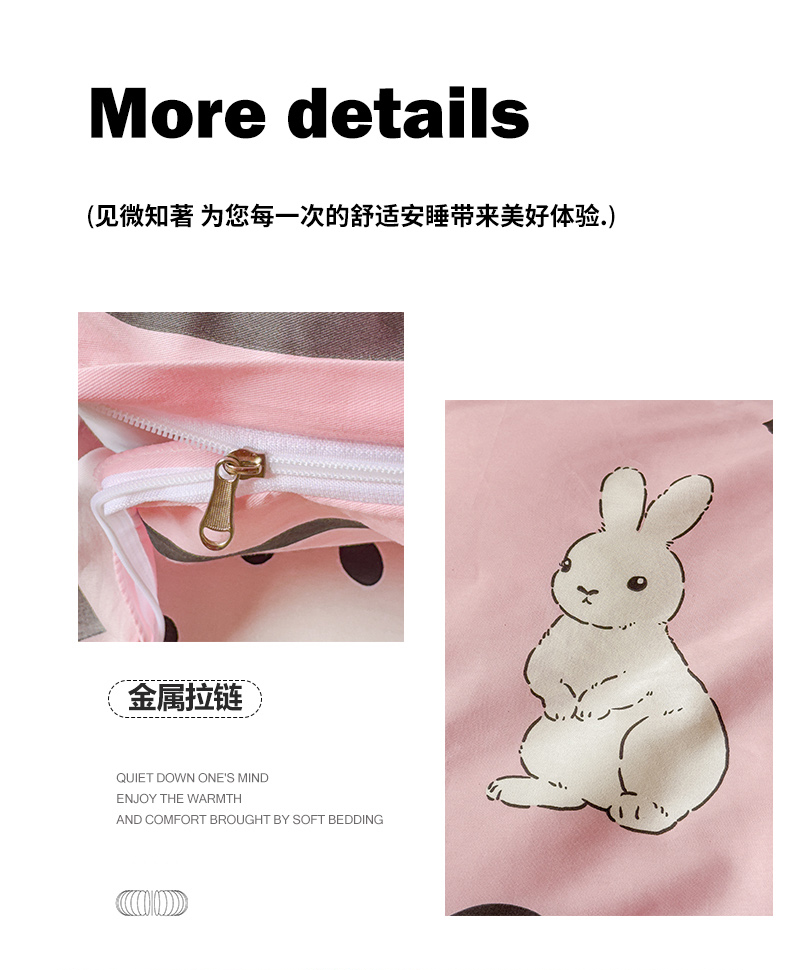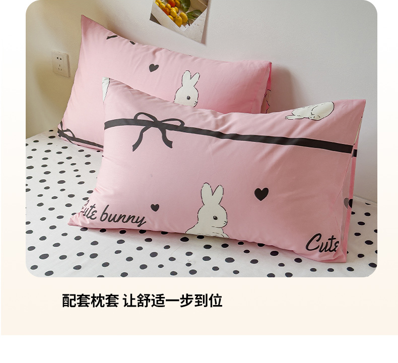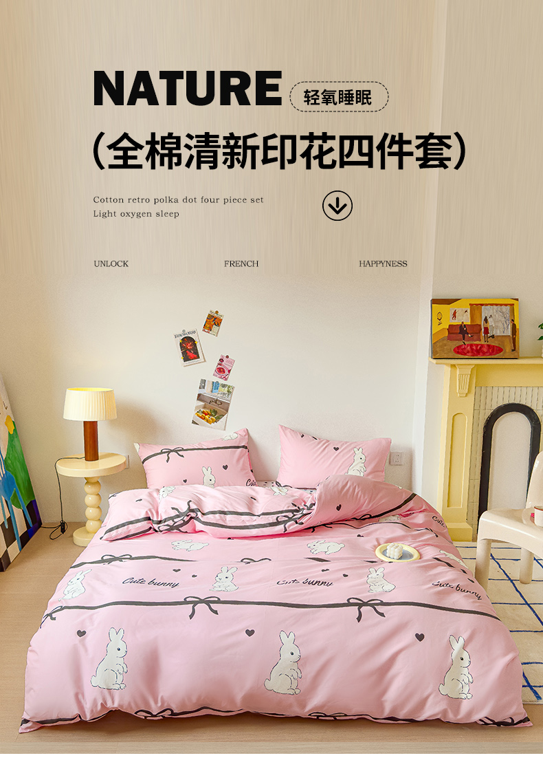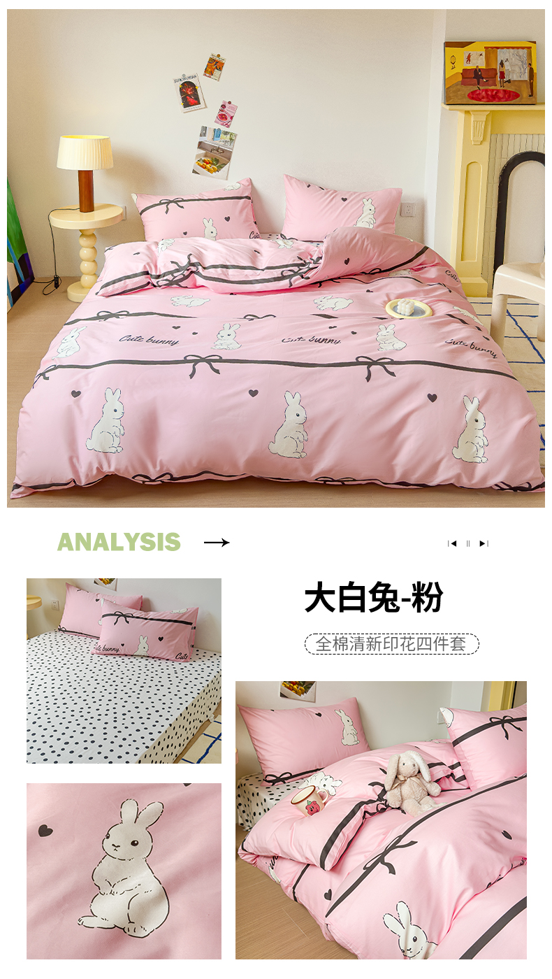 商品名称:感遇家纺 2024新款全棉印花四件套 大白兔粉