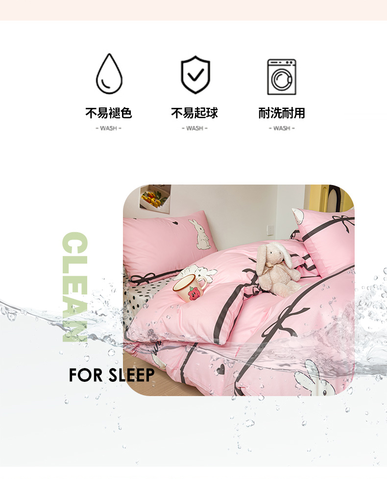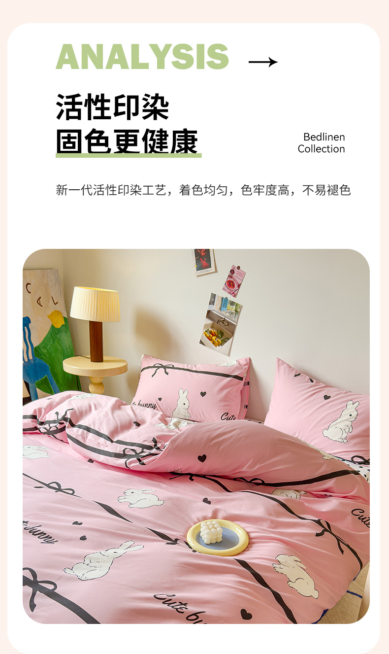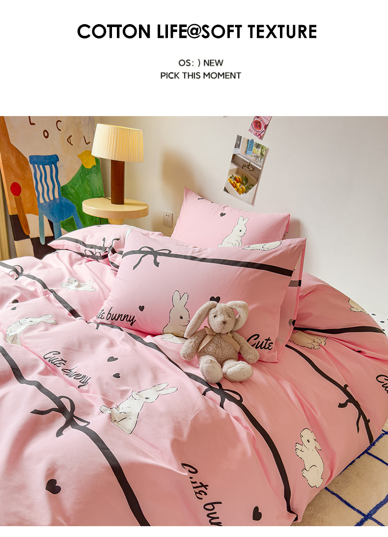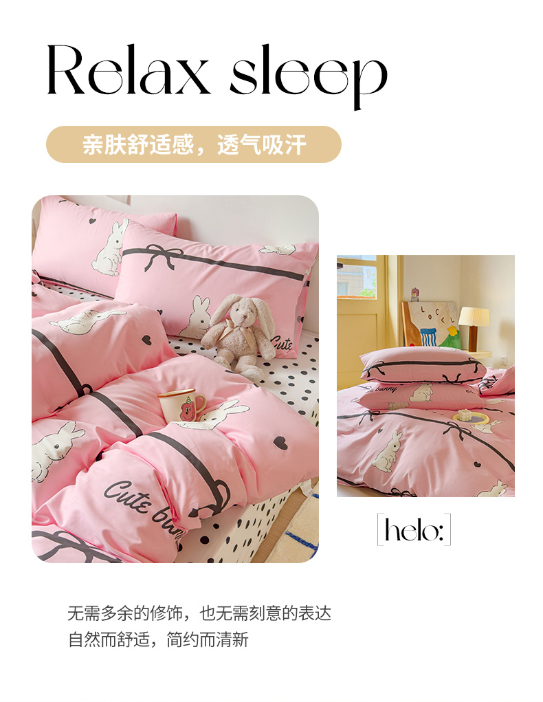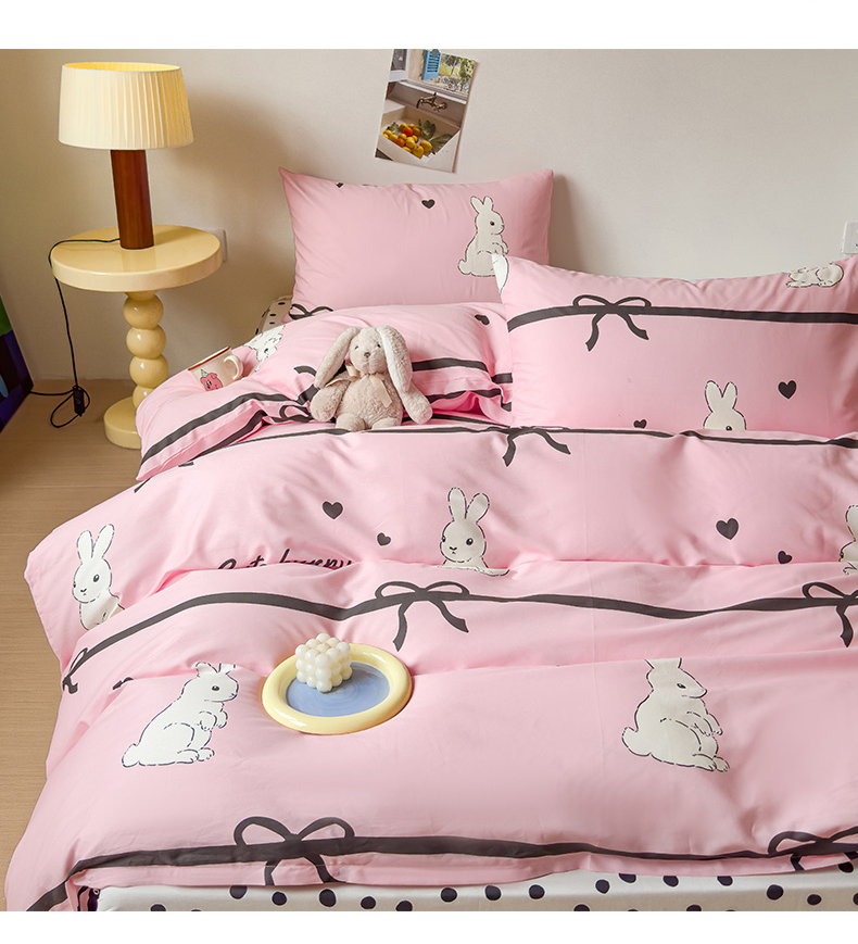 感遇家纺 2024新款全棉印花四件套 大白兔粉