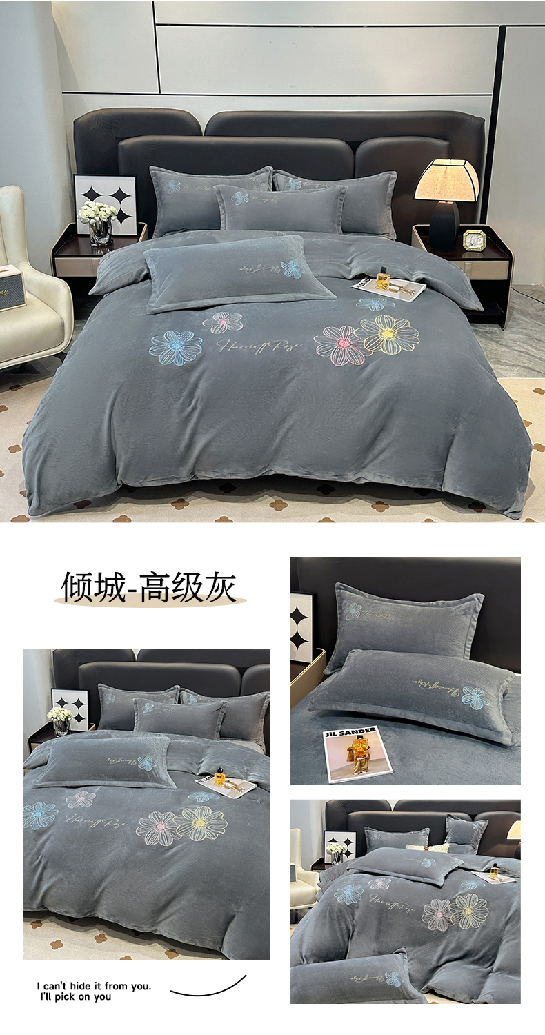 陌乘坊家纺 2024新款牛奶绒刺绣四件套-倾城系列 倾城-高级灰