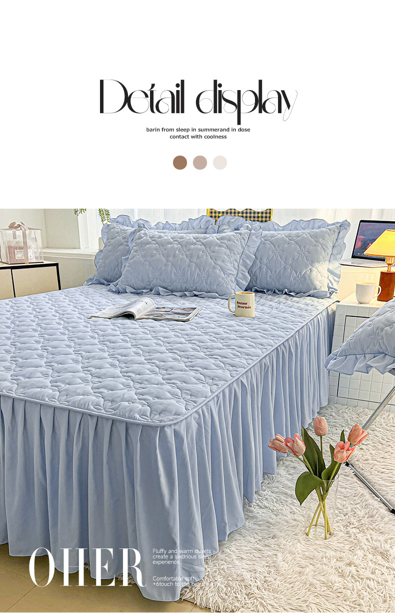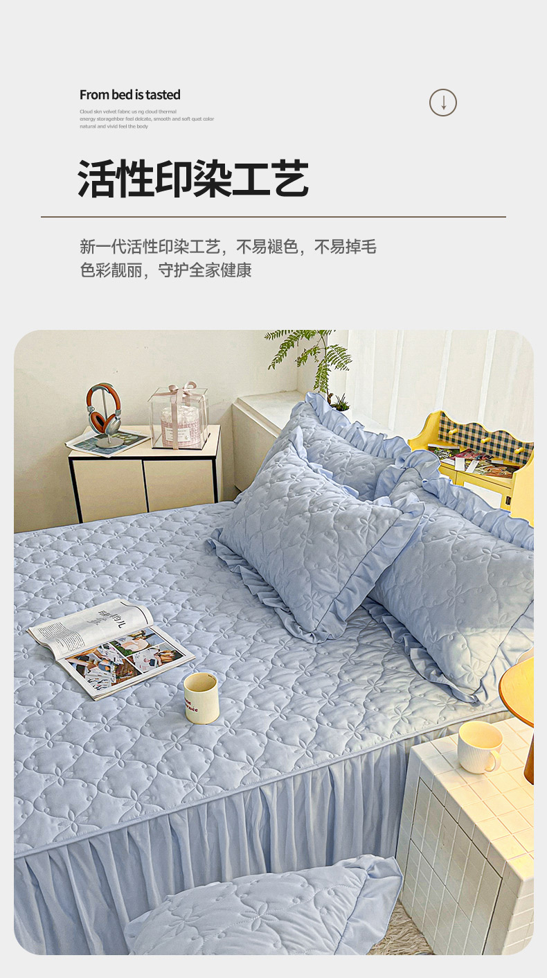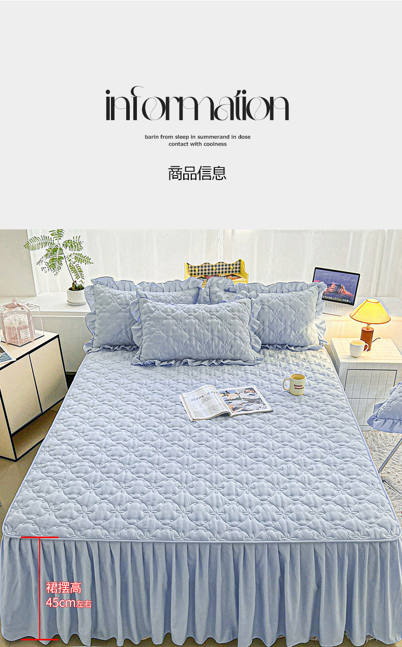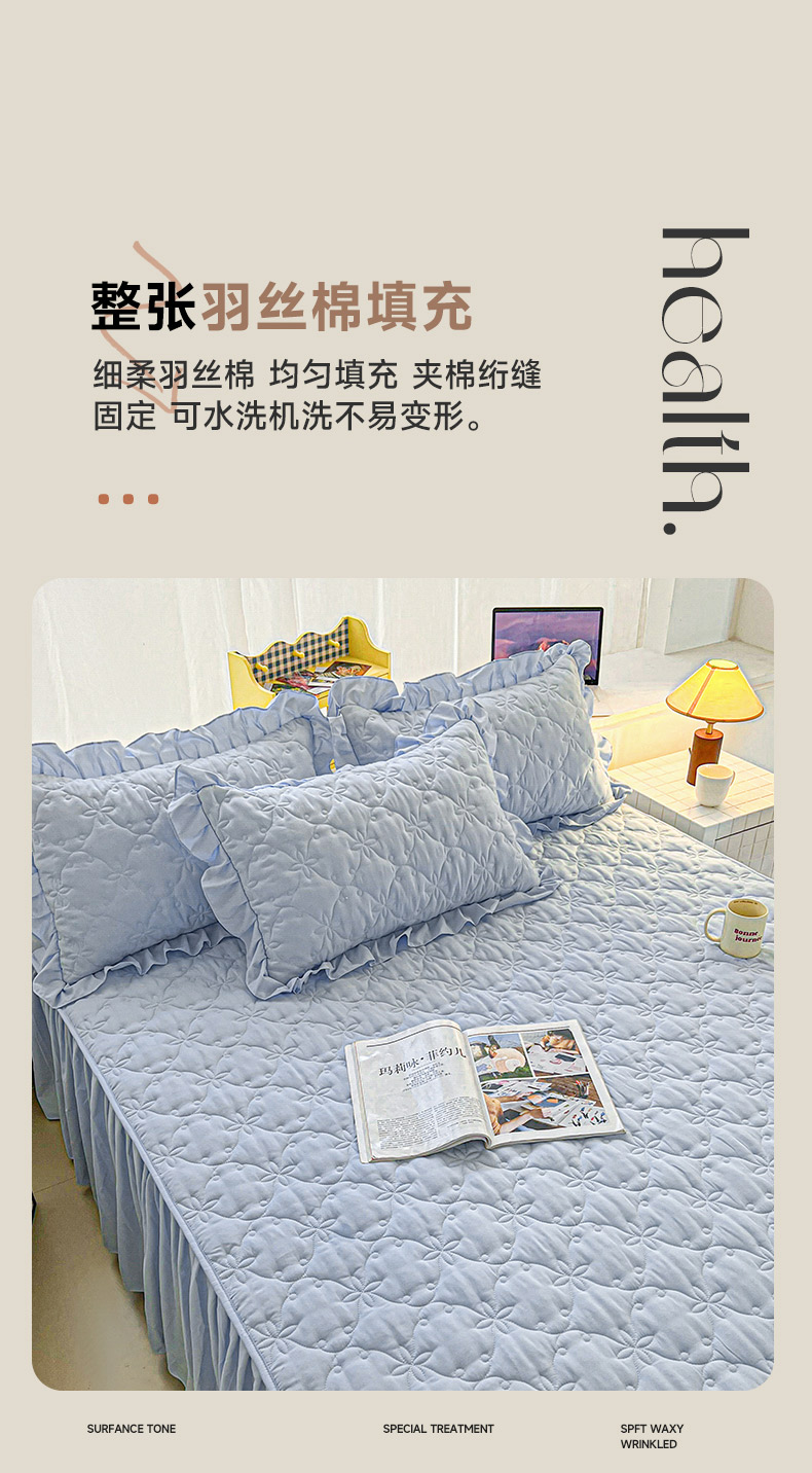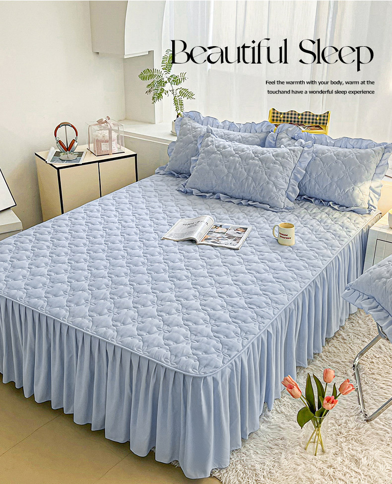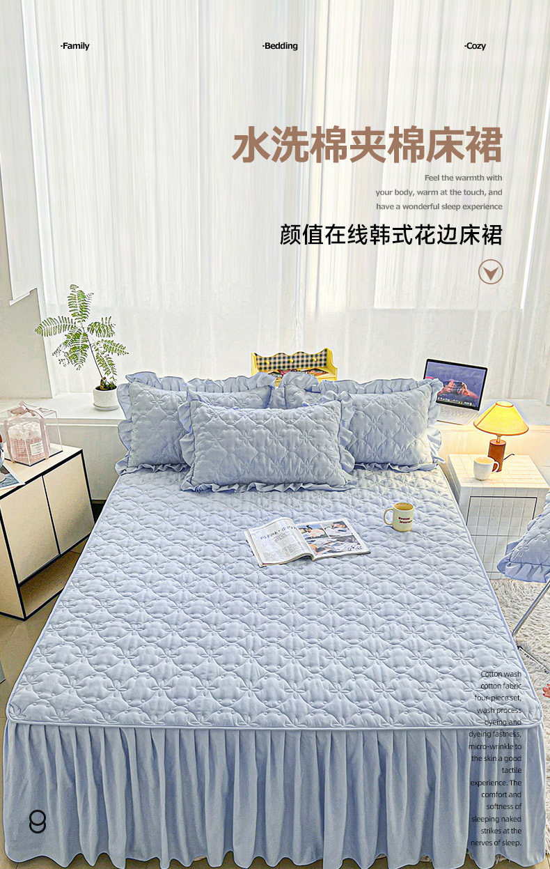 商品名称:予梦家纺 2024新款纯色高克重水洗棉夹棉床裙 曼可-浅蓝