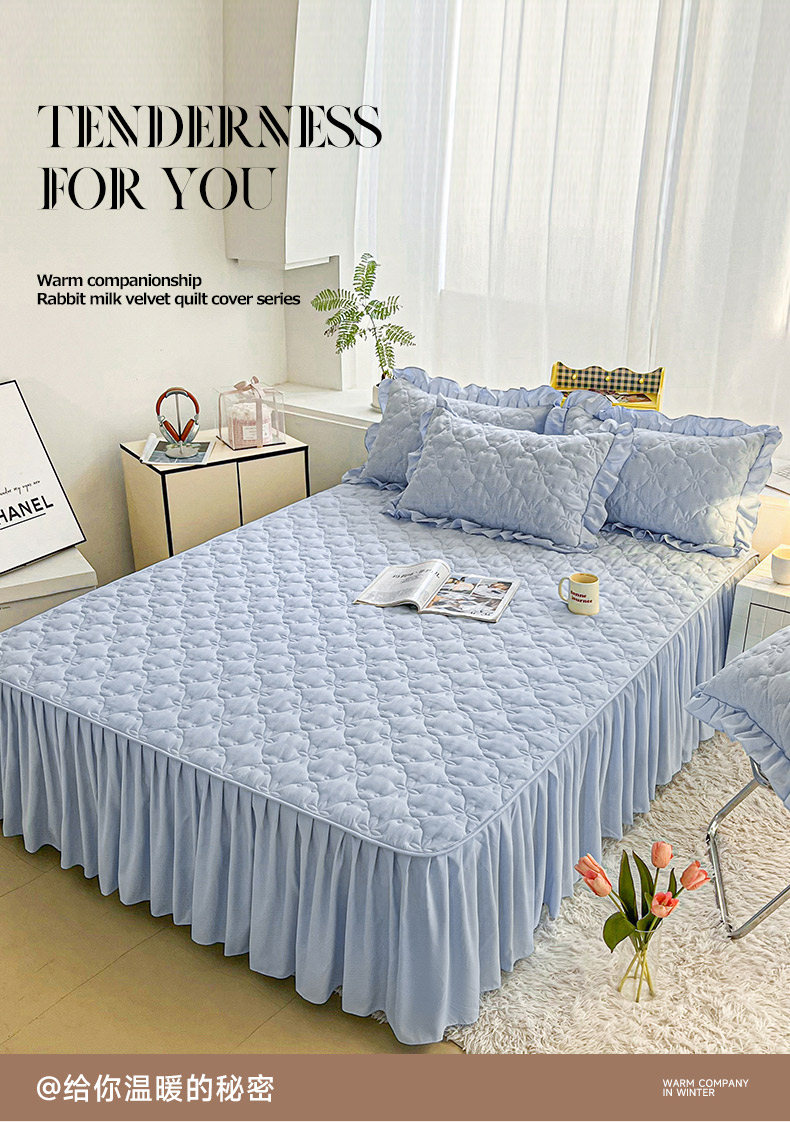 予梦家纺 2024新款纯色高克重水洗棉夹棉床裙 曼可-浅蓝