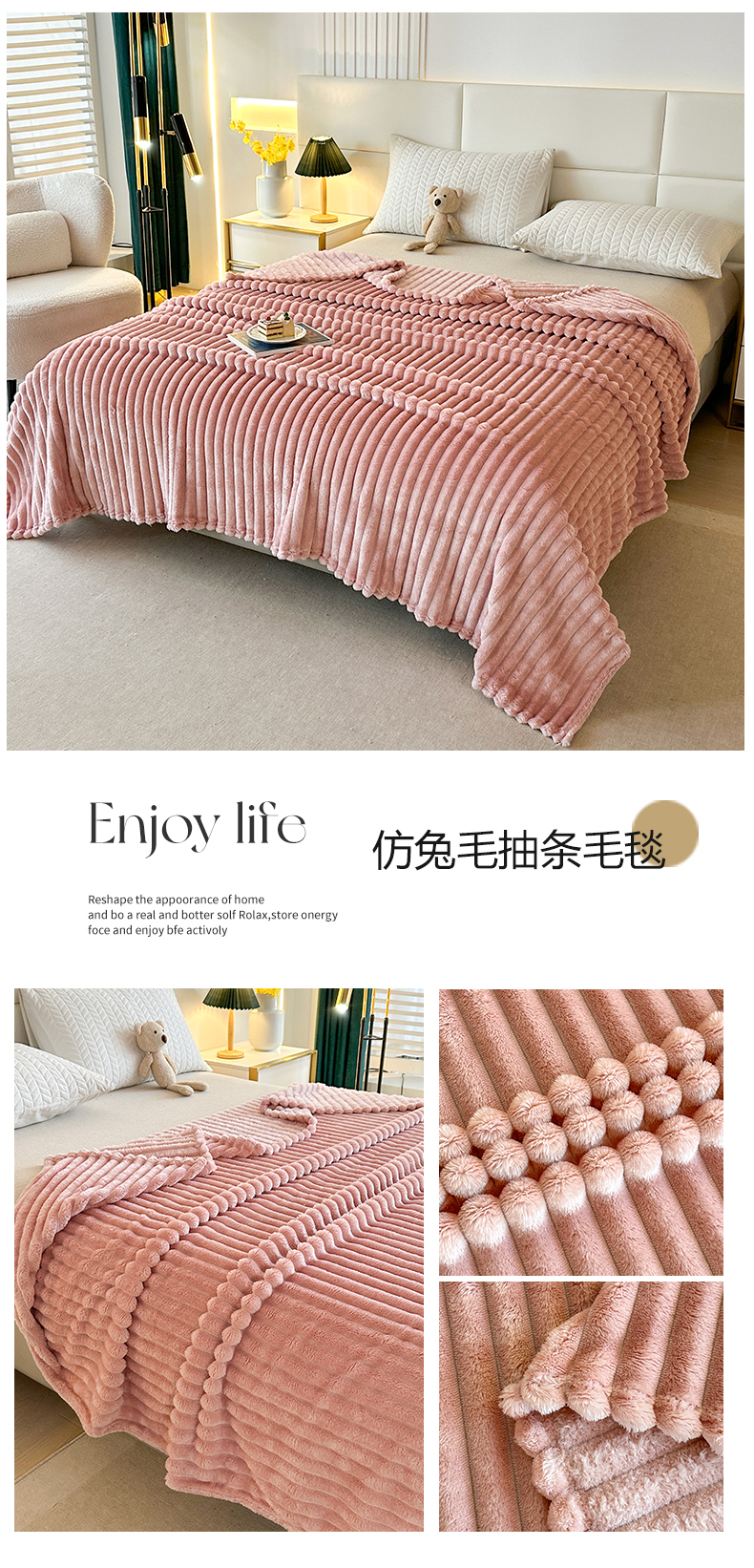 商品名称:芸锦豪 2024新款仿兔毛抽条毛毯-卷边款 粉色