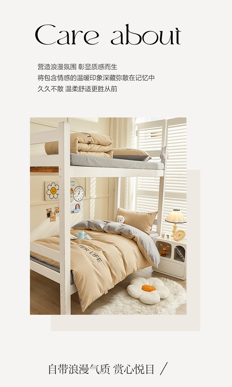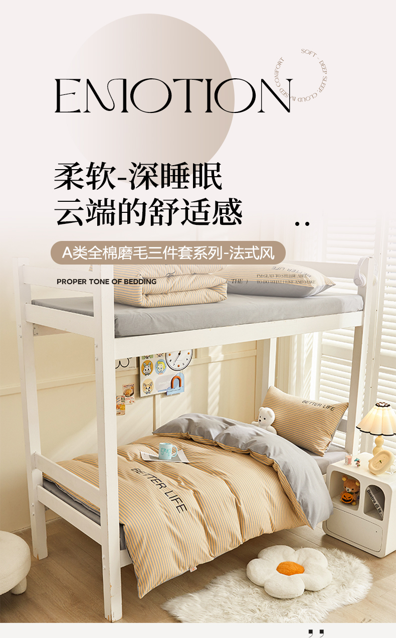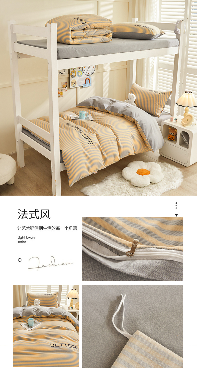 商品名称:七仙女家纺 2025新款全棉生态磨毛-前程似锦系列-学生三件套 法式风