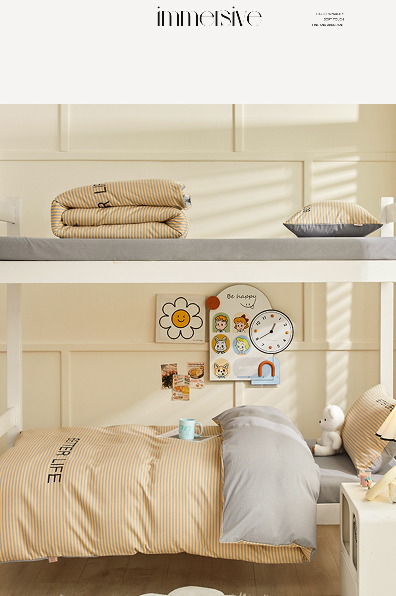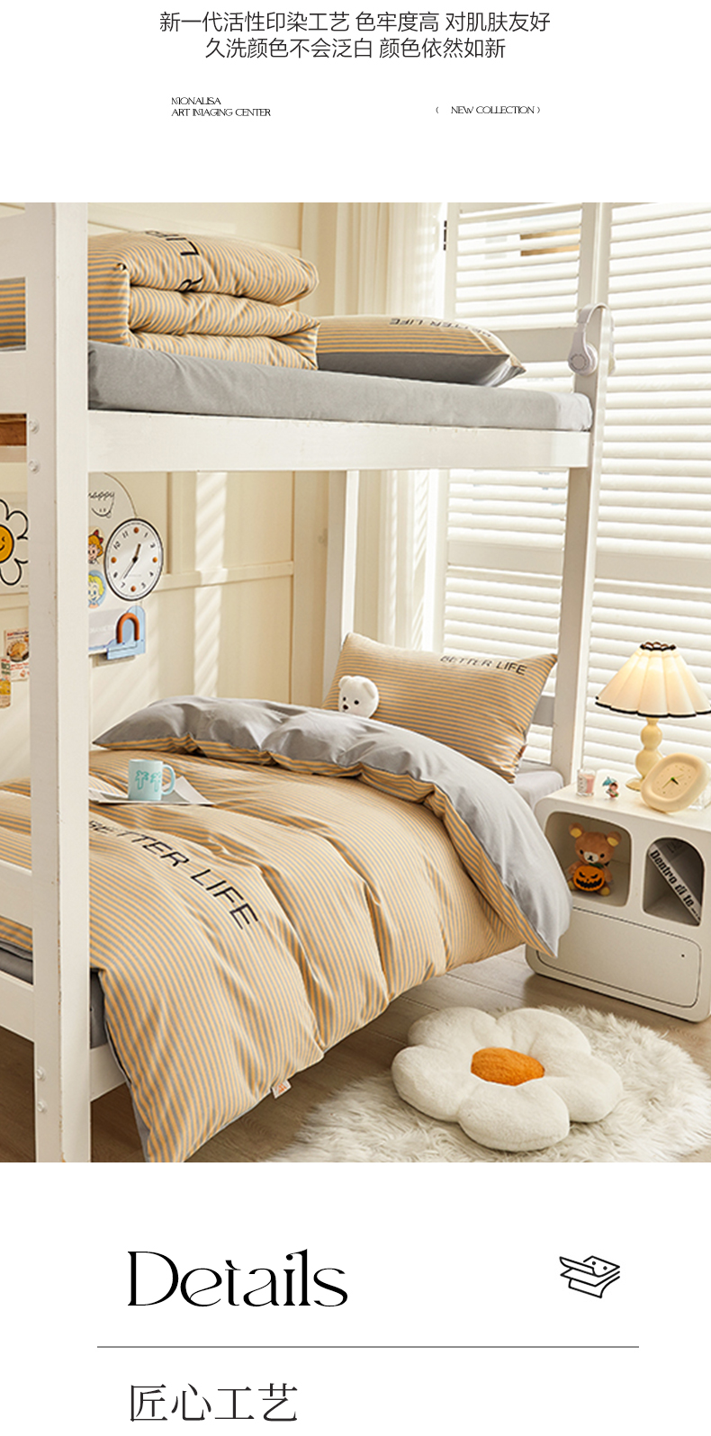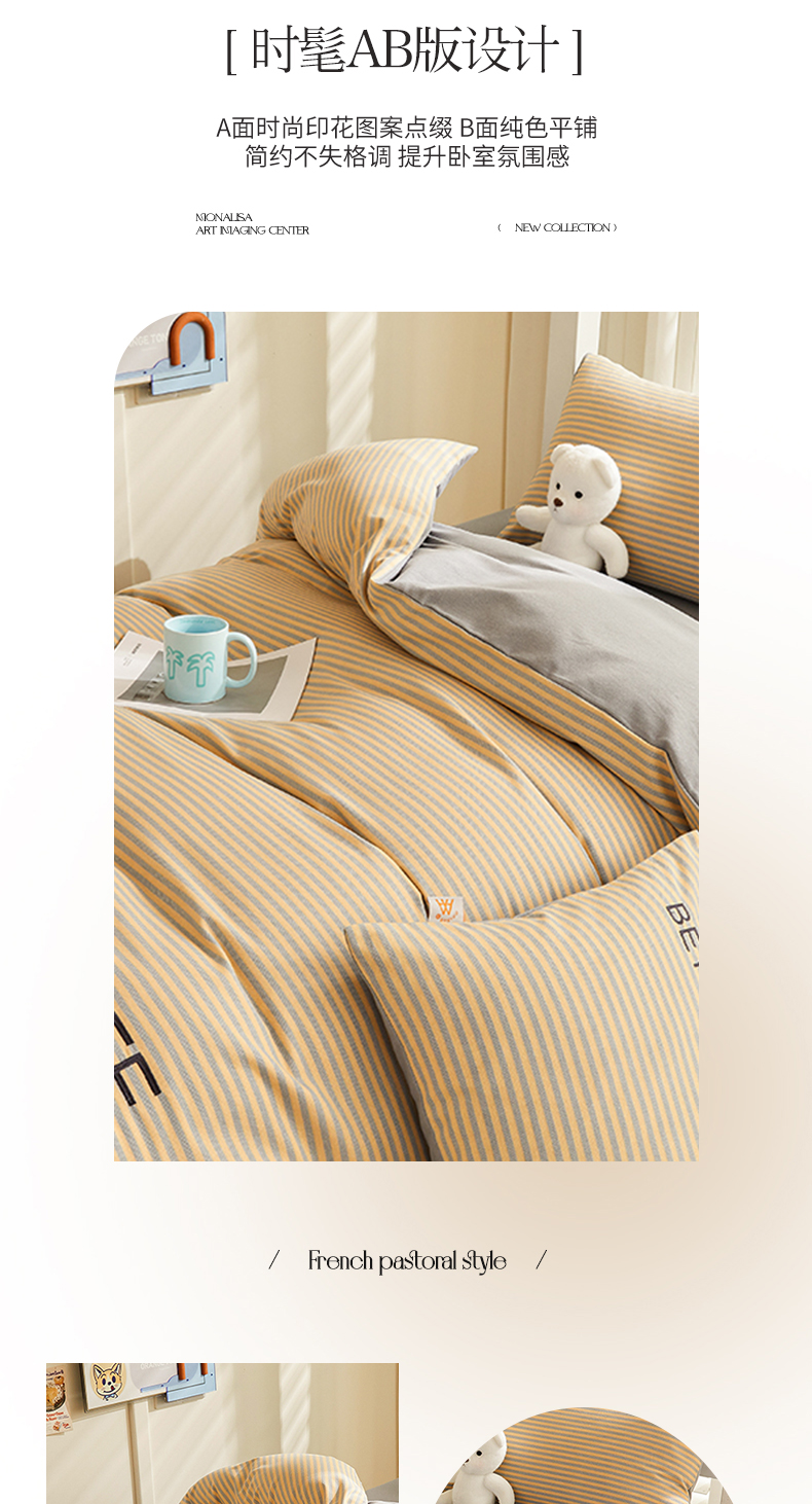 商品名称:七仙女家纺 2025新款全棉生态磨毛-前程似锦系列-学生三件套 法式风