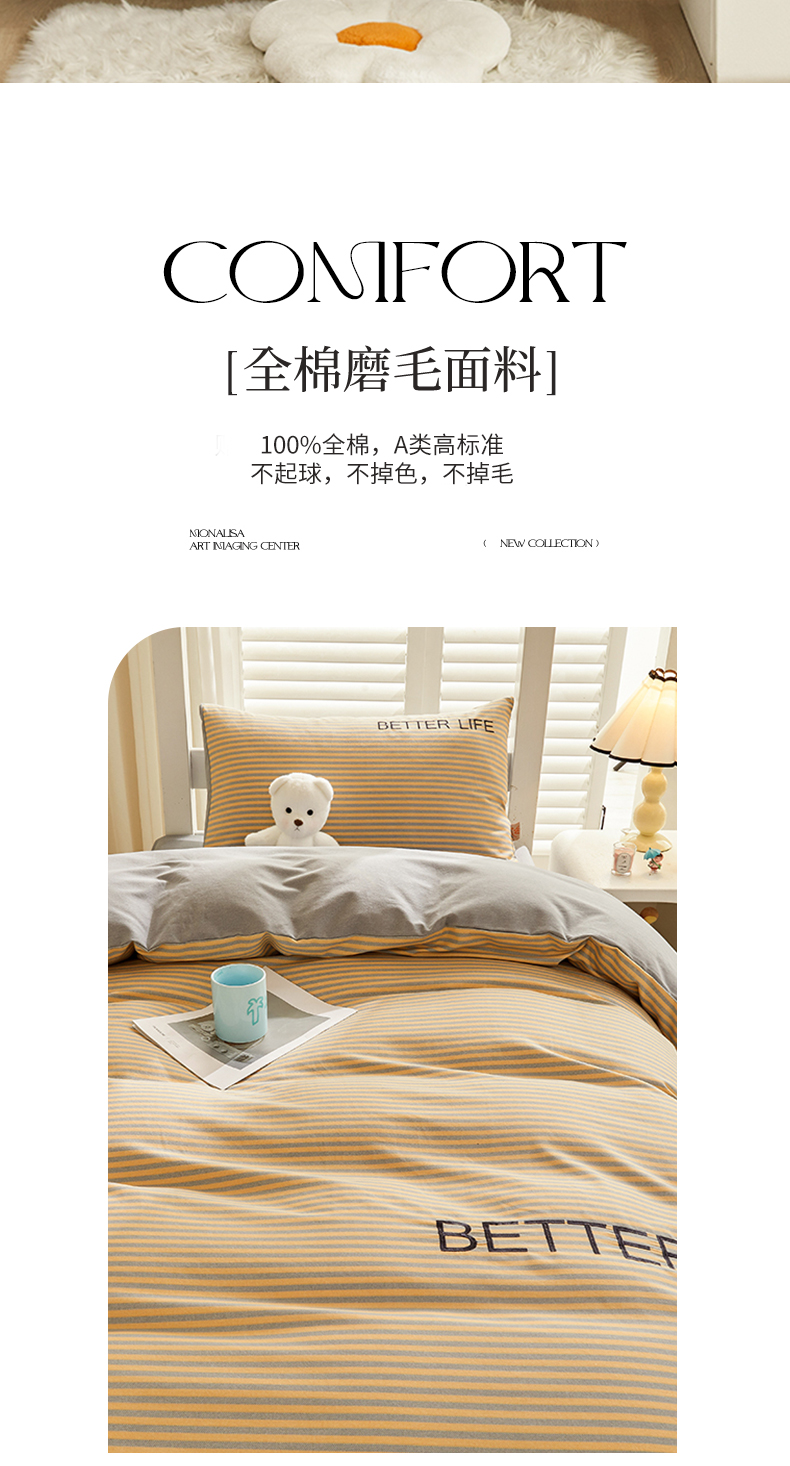 (总)七仙女家纺 2025新款全棉磨毛床单,高奢紫,活力灰,时光灰,时光米,香氛咖