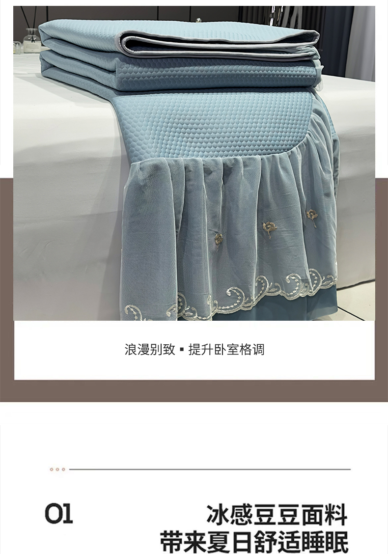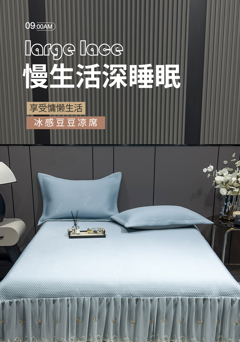81号家纺 2024新款冰感豆豆床裙款凉席 青草绿