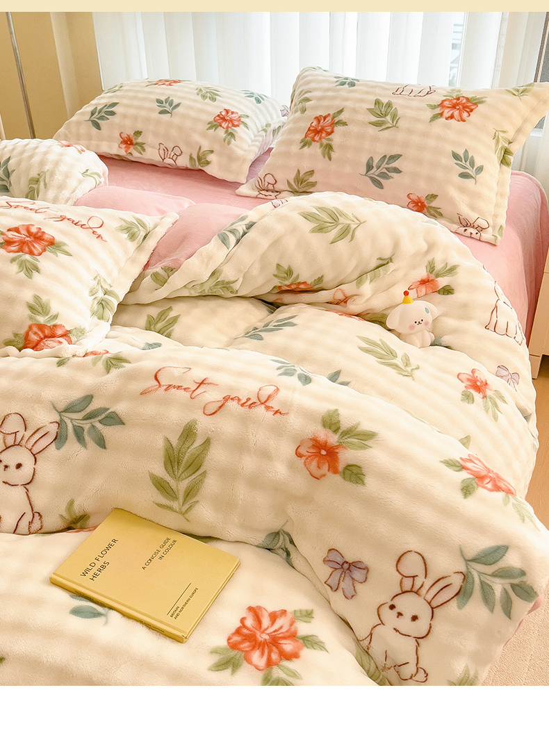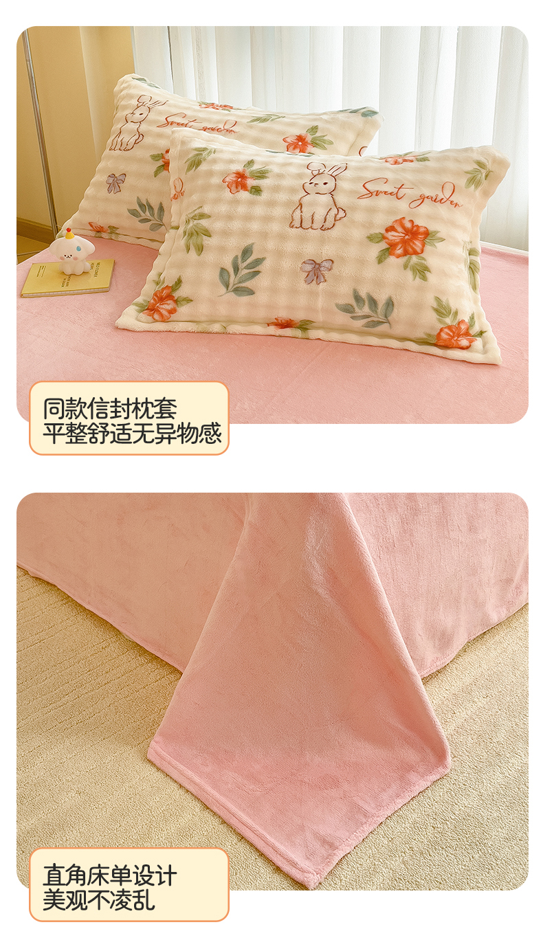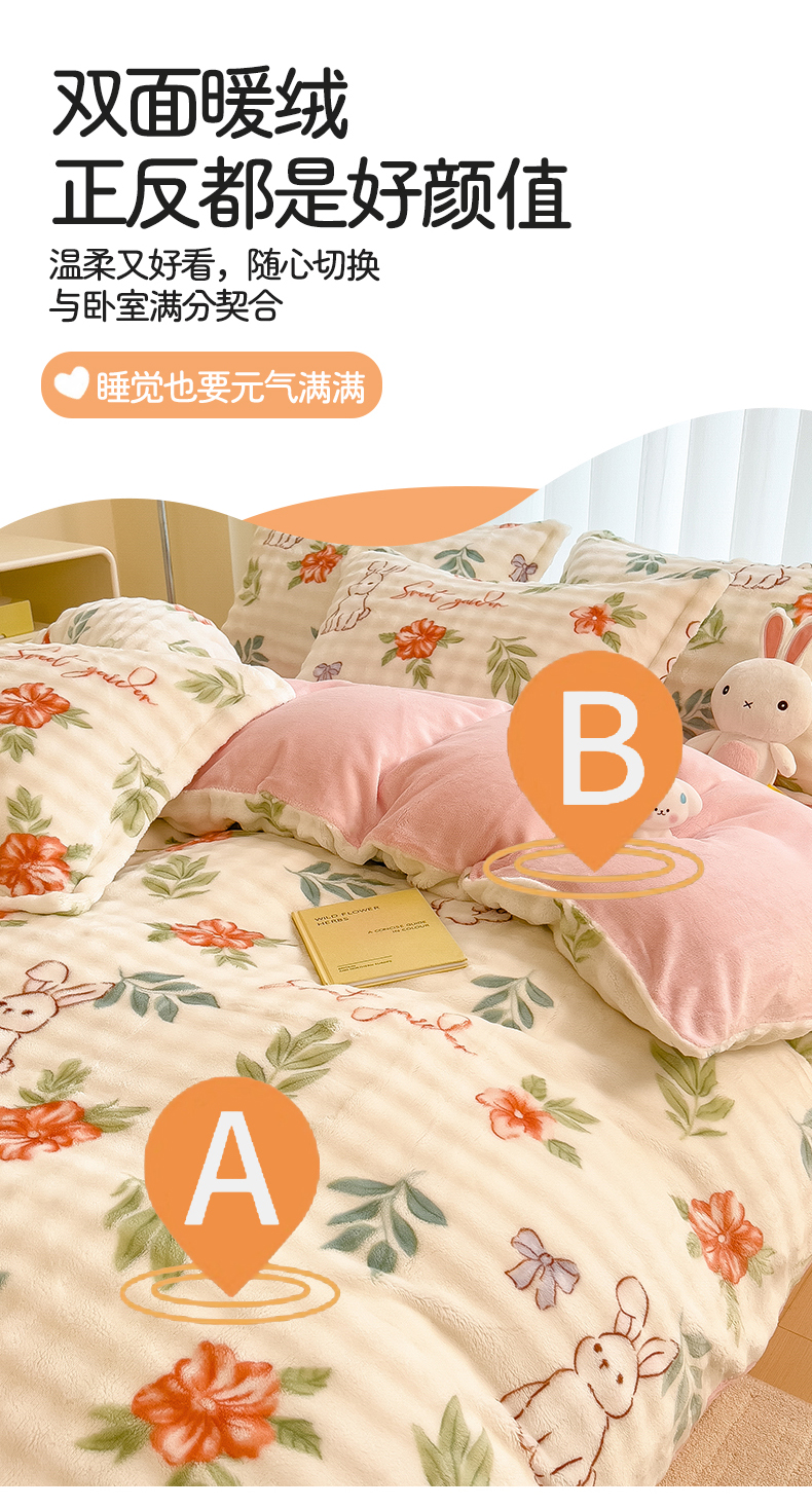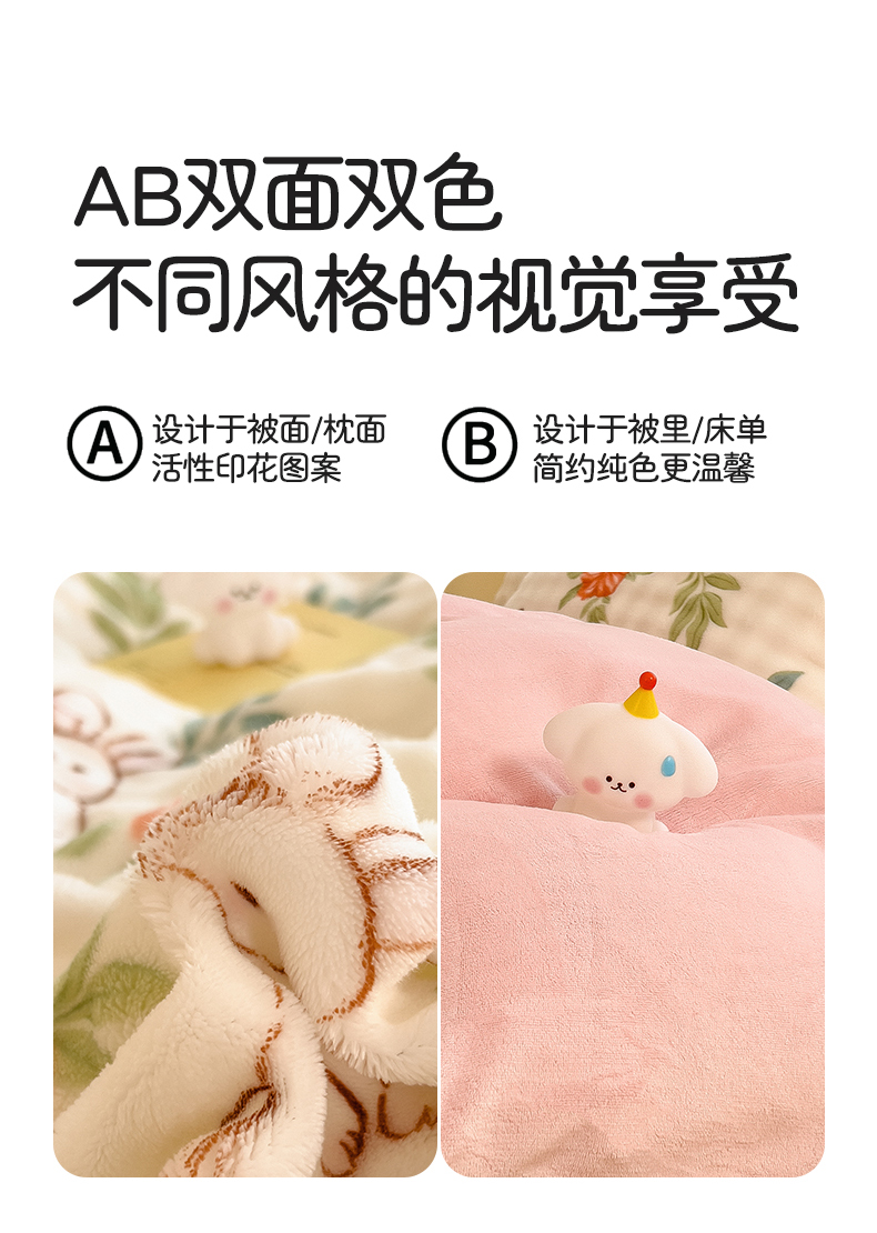 当前位置: 91家纺网 > 商品网购 > 床品套件 > 四件套 > 兔毛绒四件套 > 兄弟坊 2024新款泡泡印花兔毛绒四件套 花间兔兔-1