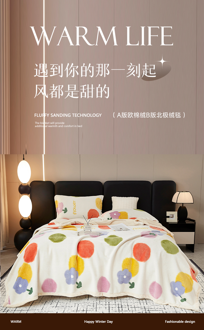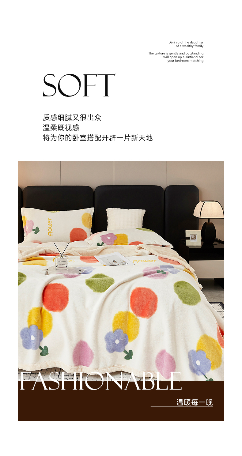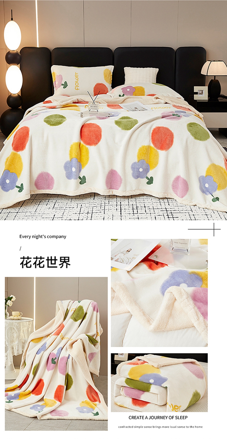 商品名称:坦客 2025新款欧棉绒北极绒毯花花世界