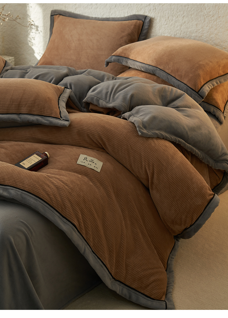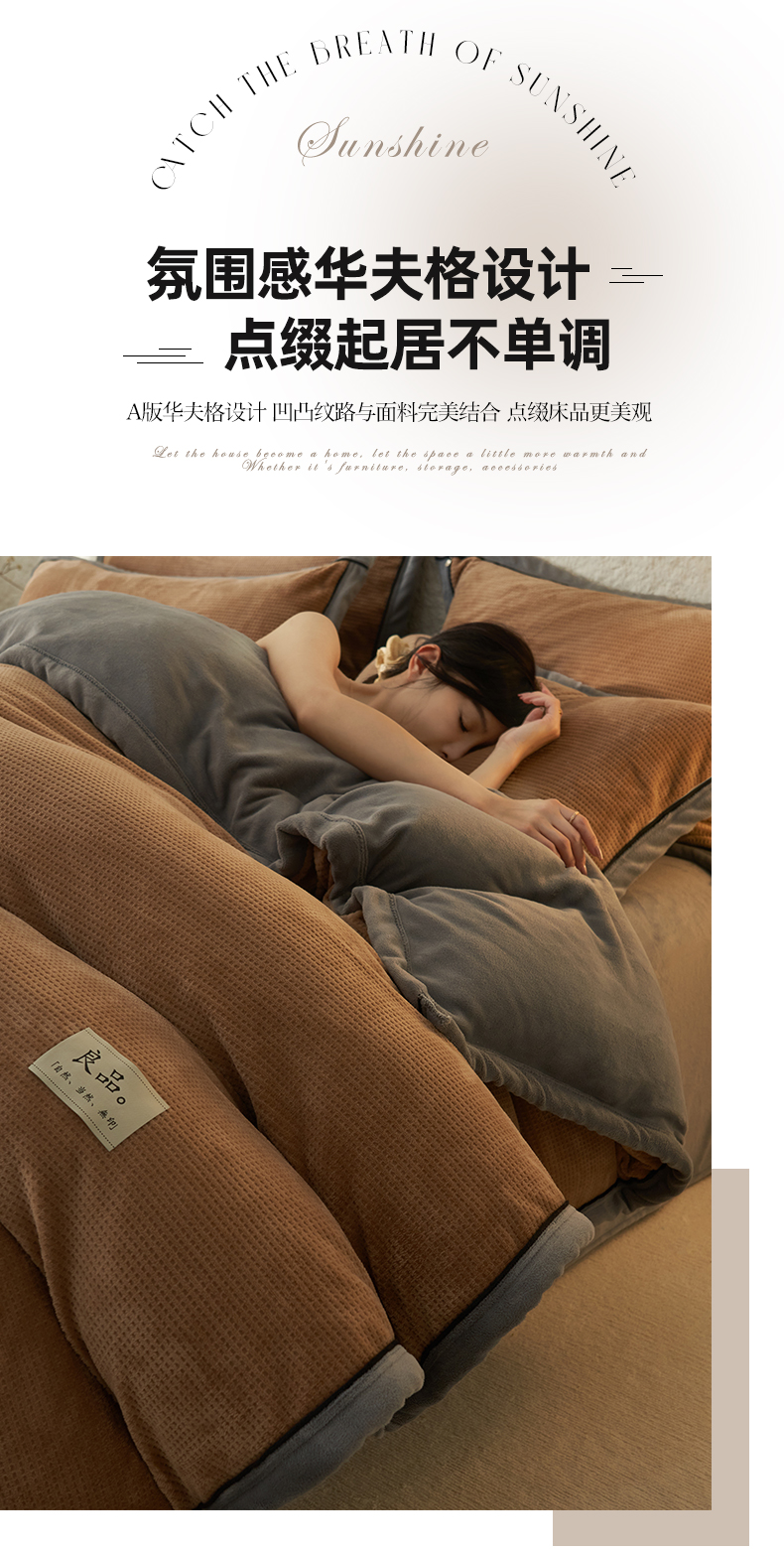 • 91家纺网 家纺一手货源 找家纺 2024新款牛奶绒华夫格可拆洗冬被被子被芯 华夫格可拆洗-奶咖