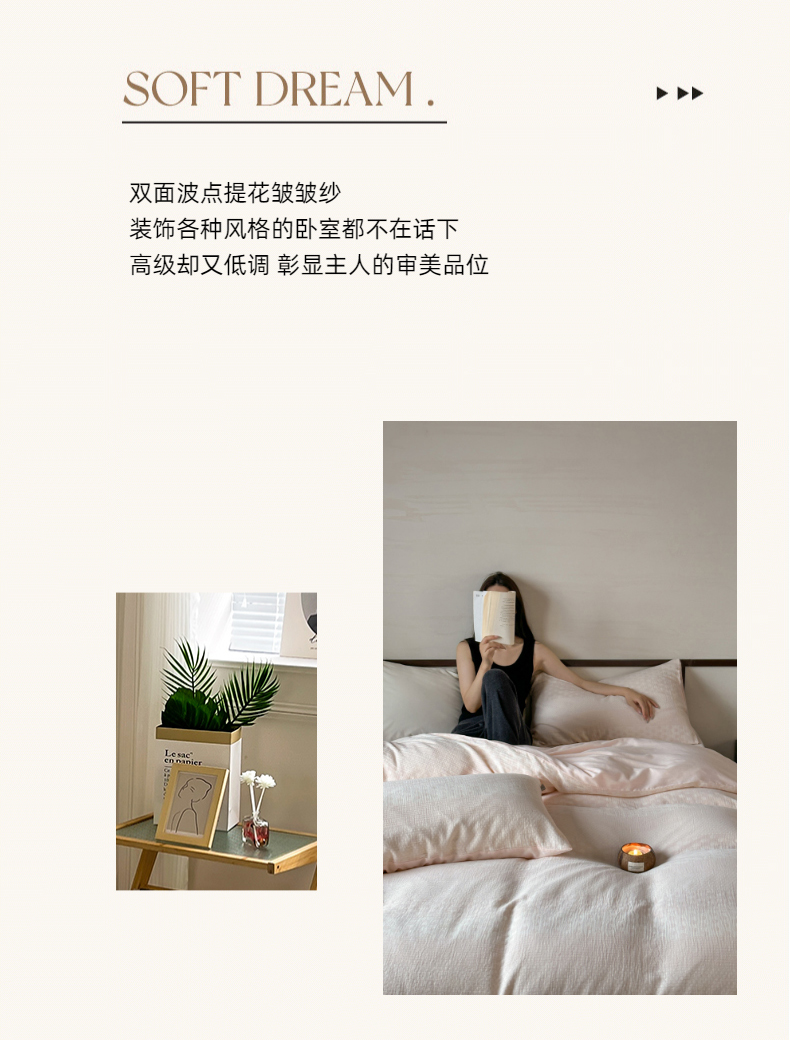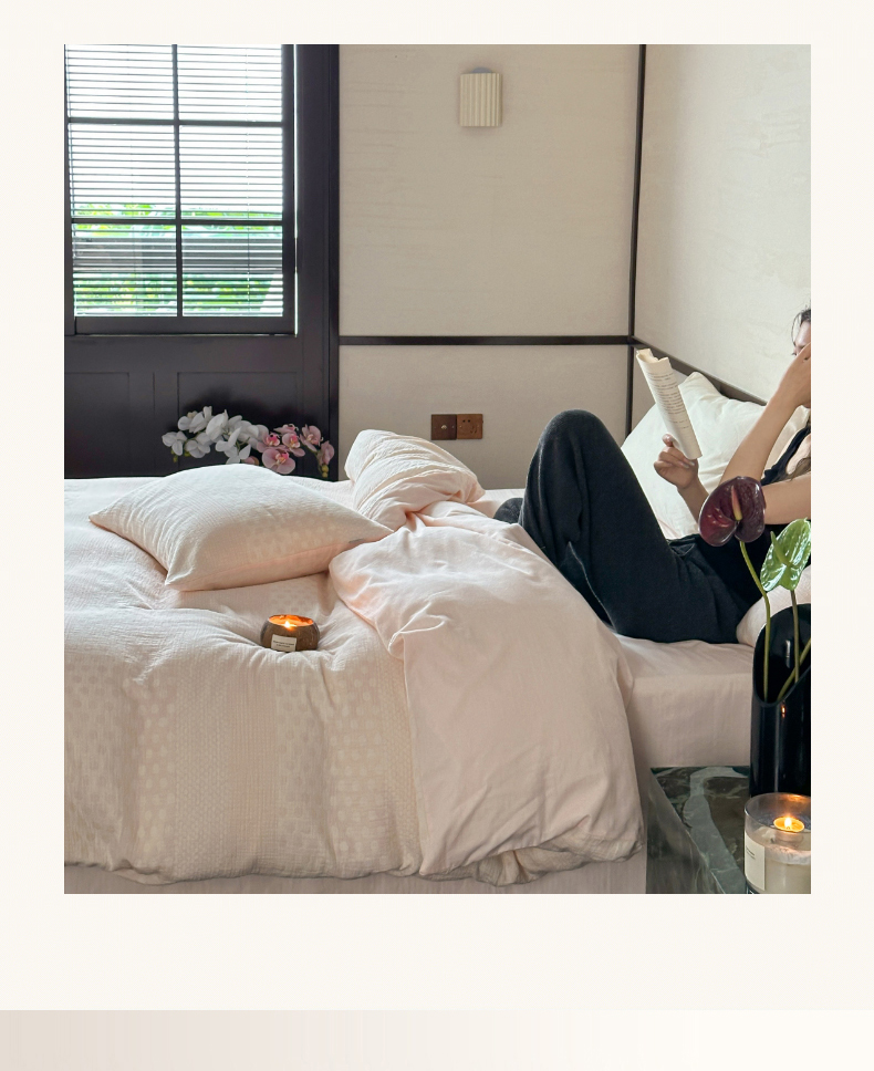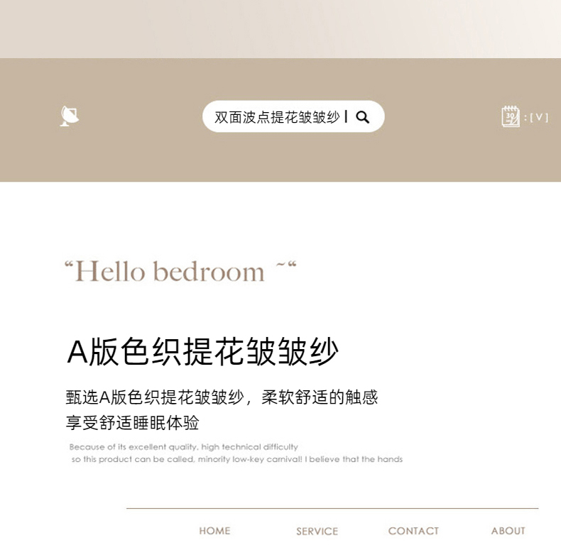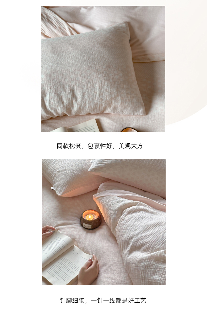 当前位置: 91家纺网 > 商品网购 > 床品套件 > 四件套 > 全棉普通四件套 > (总)玛奇朵 2024新品韩国A类色织简约双面波点提花双层皱皱纱-波尔卡舞曲