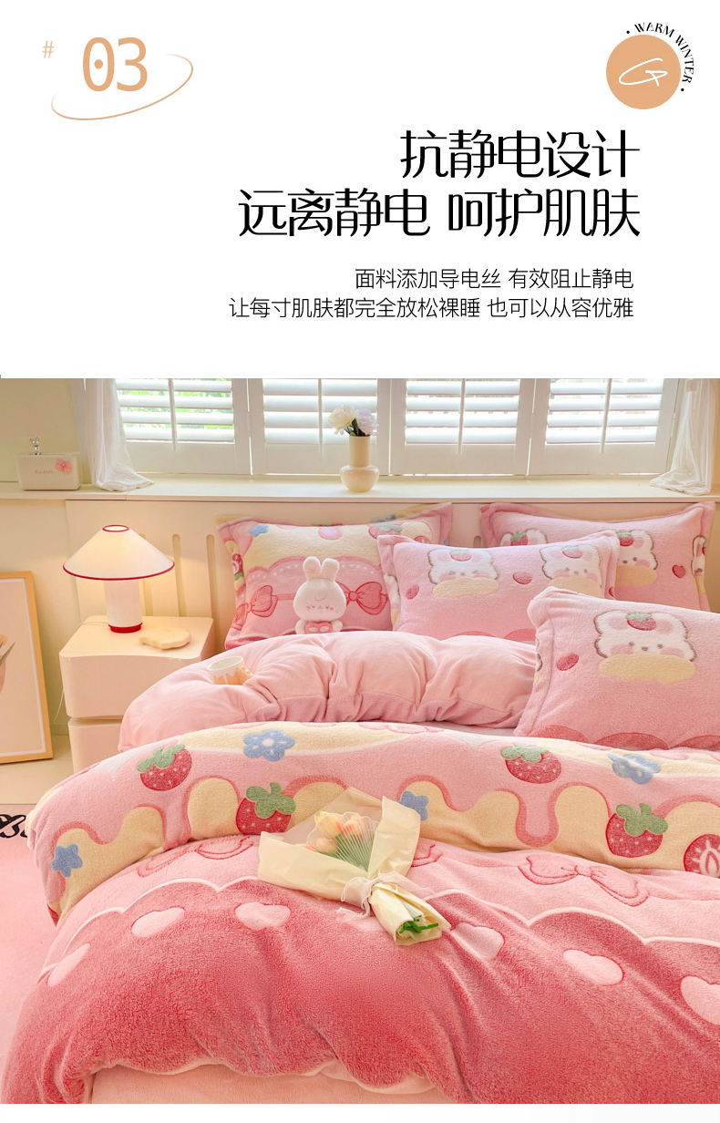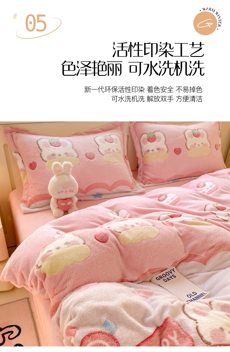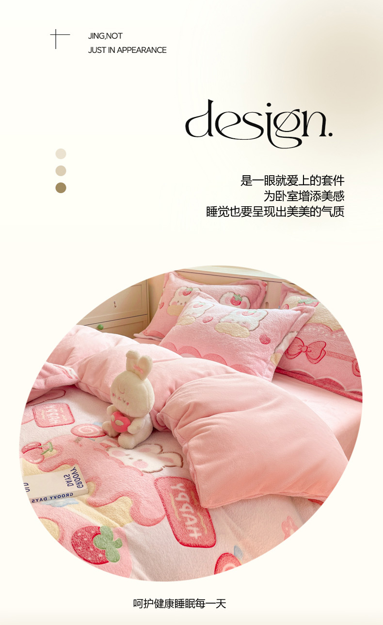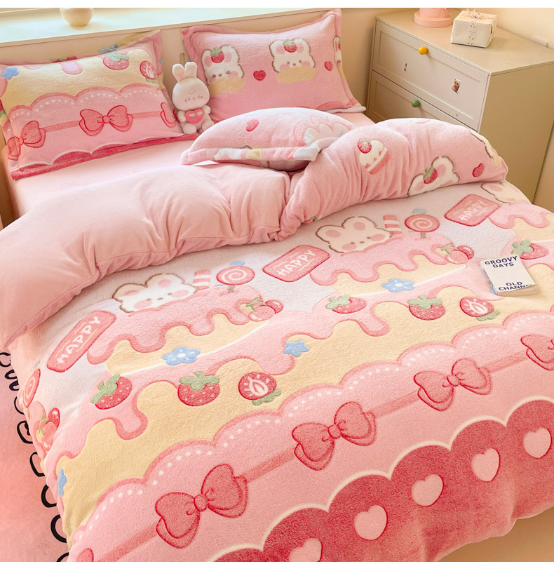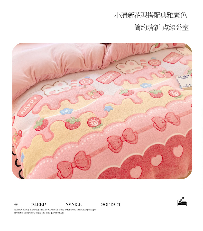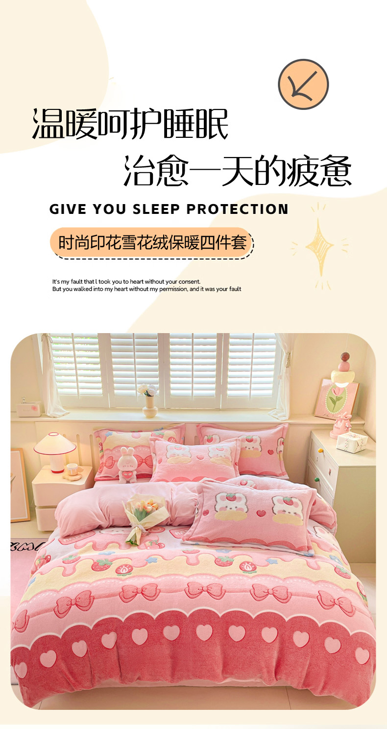 当前位置: 91家纺网 > 商品网购 > 床品套件 > 四件套 > 其它四件套 > 沐慕 2024新款卡通印花雪花绒四件套加厚牛奶绒四件套 蛋糕兔
