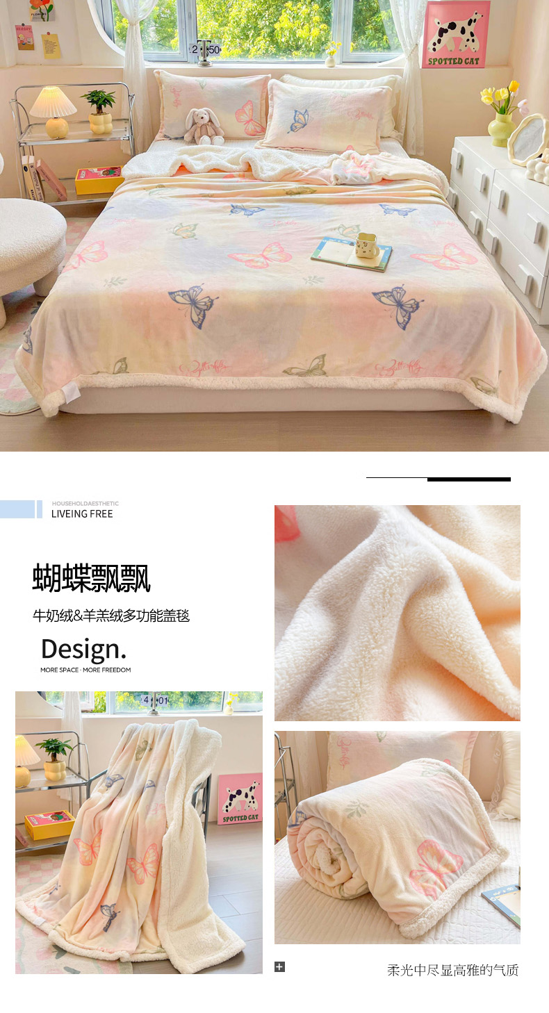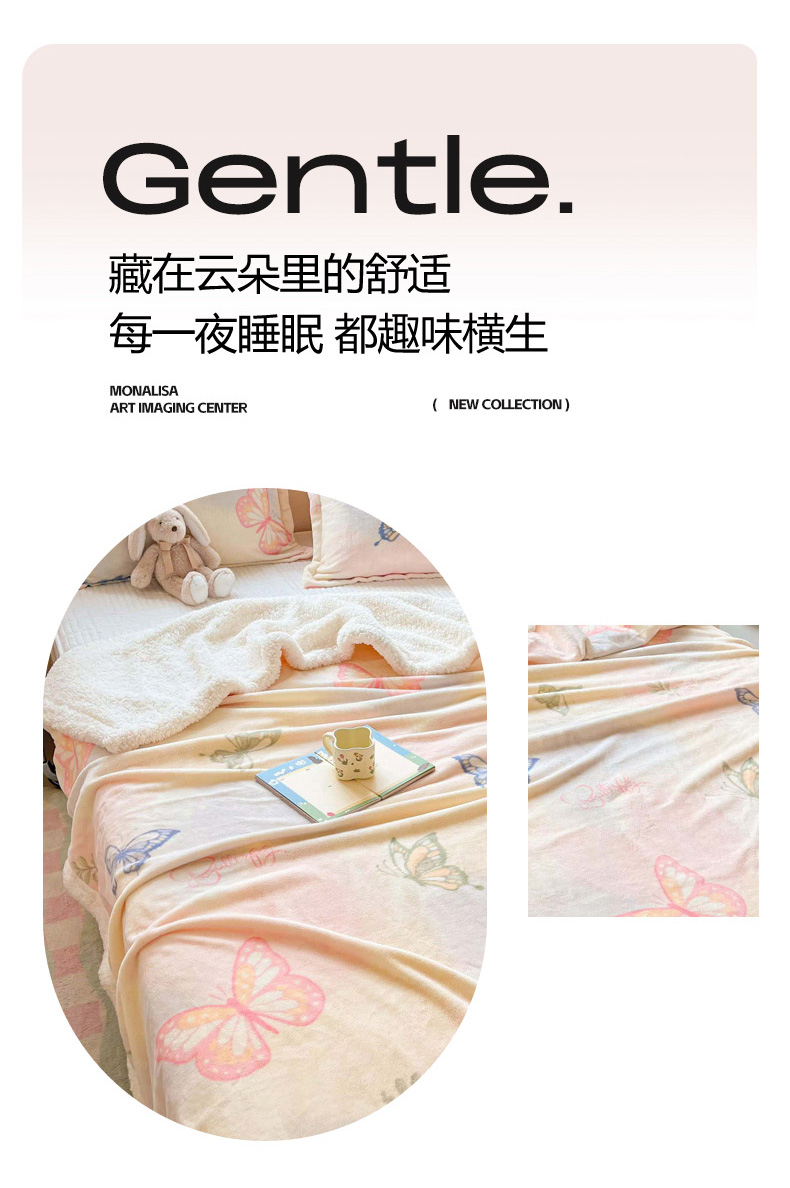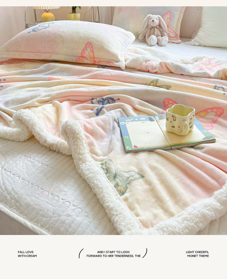 商品名称:沐慕 2024新款AB版牛奶绒拼羊羔绒毛毯毯子 毛毯-郁金香