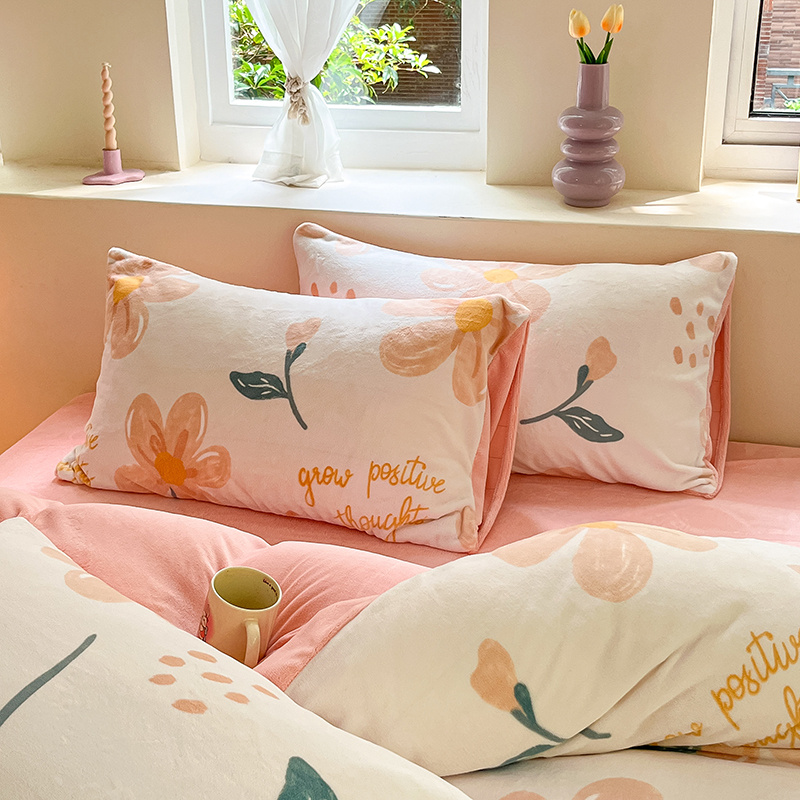 雅居纺家纺 2024新款高克重印花牛奶绒单枕套 浪漫花香