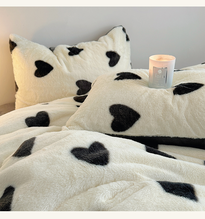 商品名称:雅居纺家纺 2024新款高克重兔毛印花牛奶绒四件套-爱心 爱心-灰