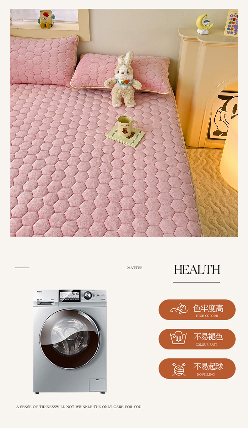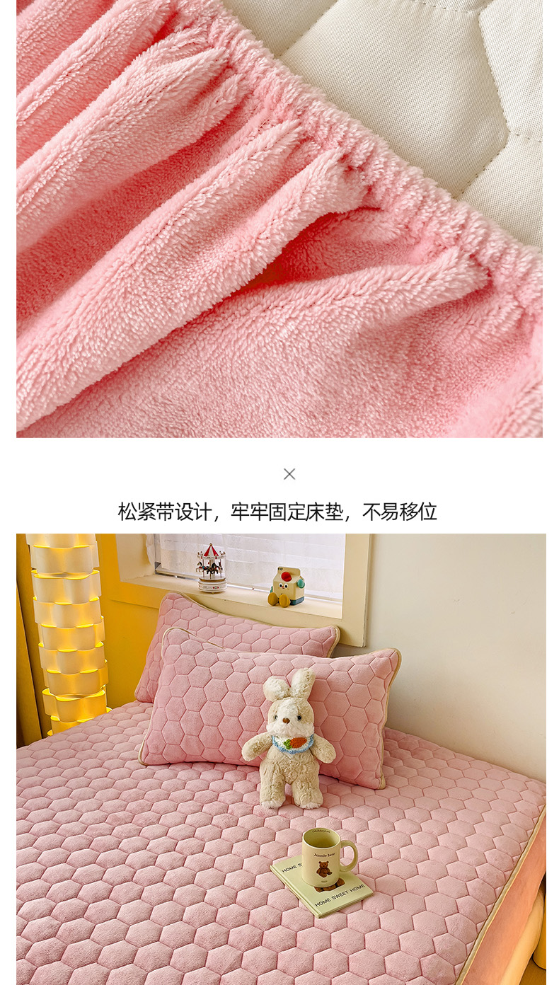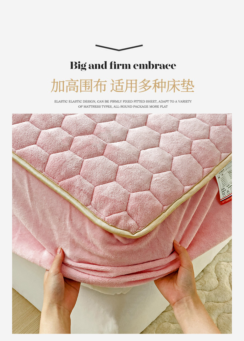 • 91家纺网 家纺一手货源 找家纺 梦舒羽 2025新款牛奶绒夹棉床笠三件套床罩床单床盖护垫套 樱花粉