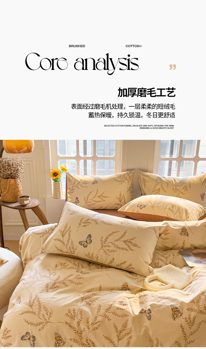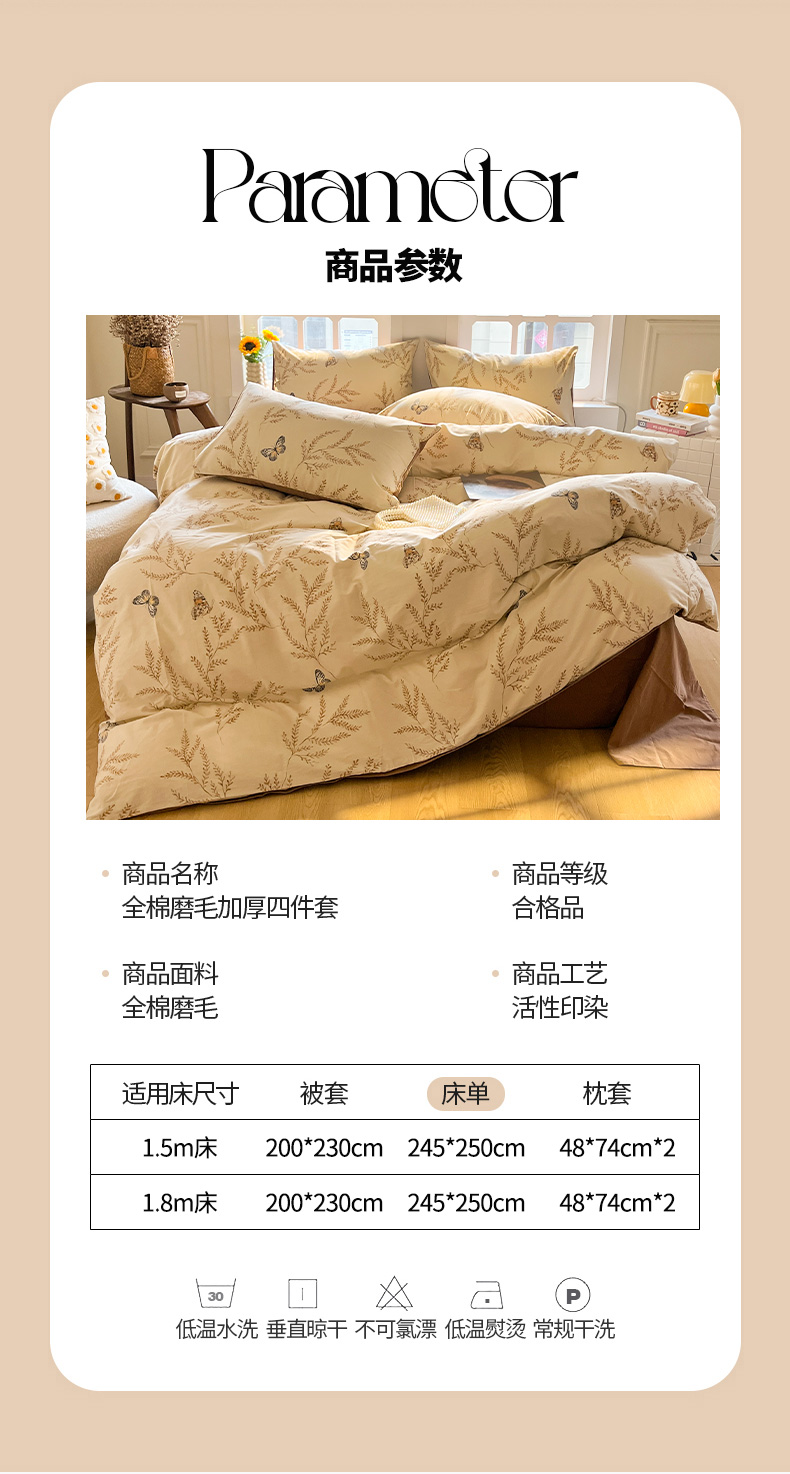 商品名称:千朵 2024新款全棉磨毛四件套 沐梦