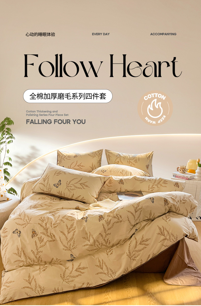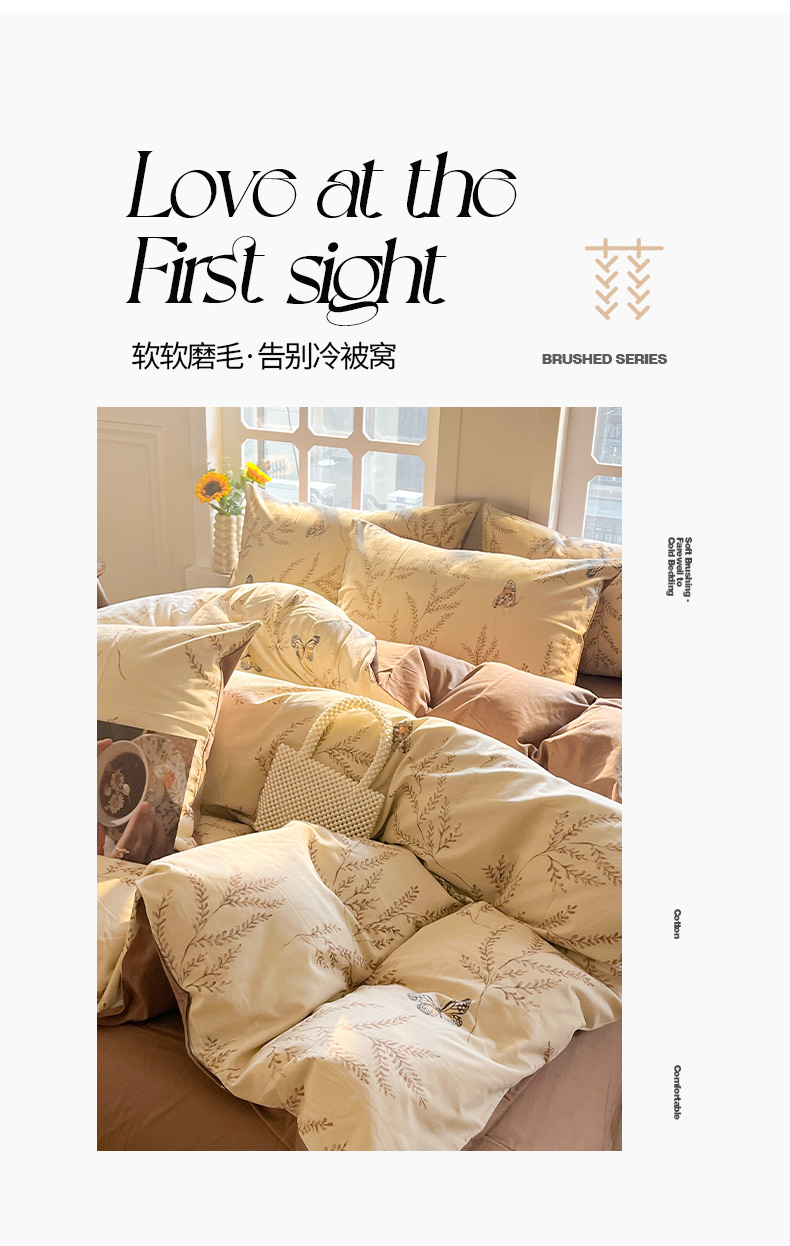 (总)千朵 2025新款全棉磨毛四件套,浪漫人生粉,浪漫人生米,香漫豆沙,茵然豆沙,茵然咖,珍妮咖,珍妮绿