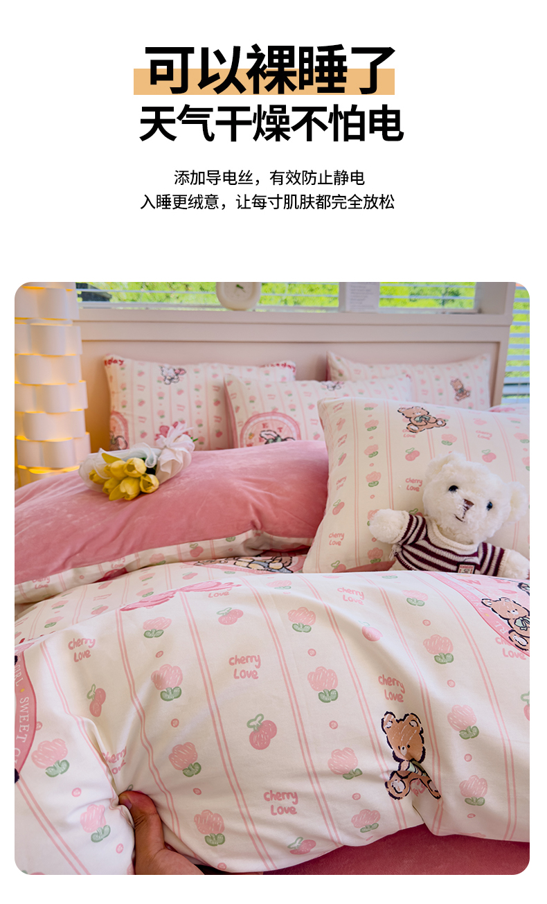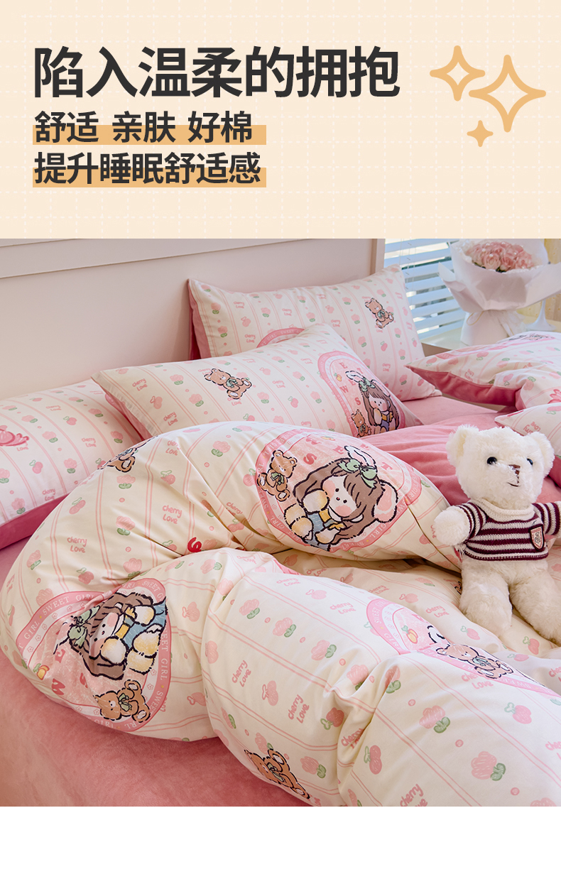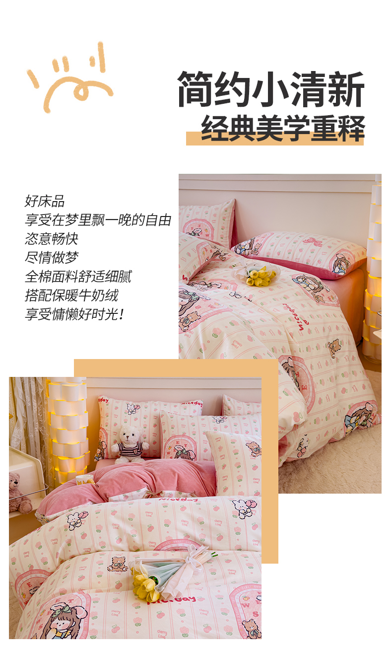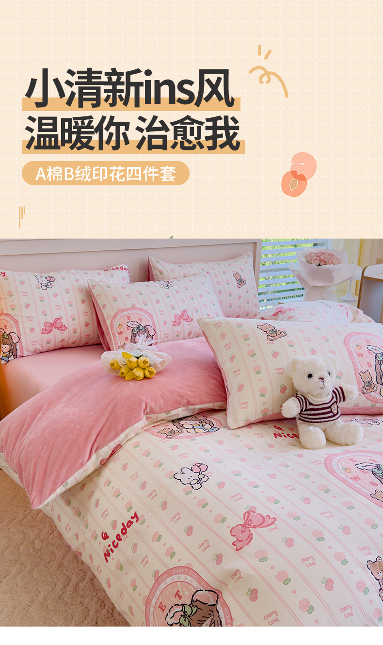 当前位置: 91家纺网 > 商品网购 > 床品套件 > 四件套 > 其它四件套 > 清雅福 2024新款小清新ins棉加绒印花四件套系列-棉绒风格一 棉绒小公主