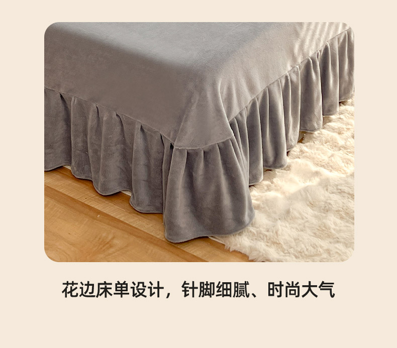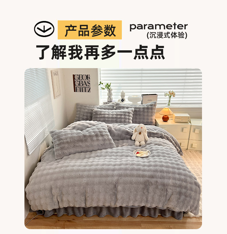 商品名称:欧冠家纺 2024秋冬新款纯色泡泡绒和七彩泡泡床裙款四件套 泡泡-高级灰