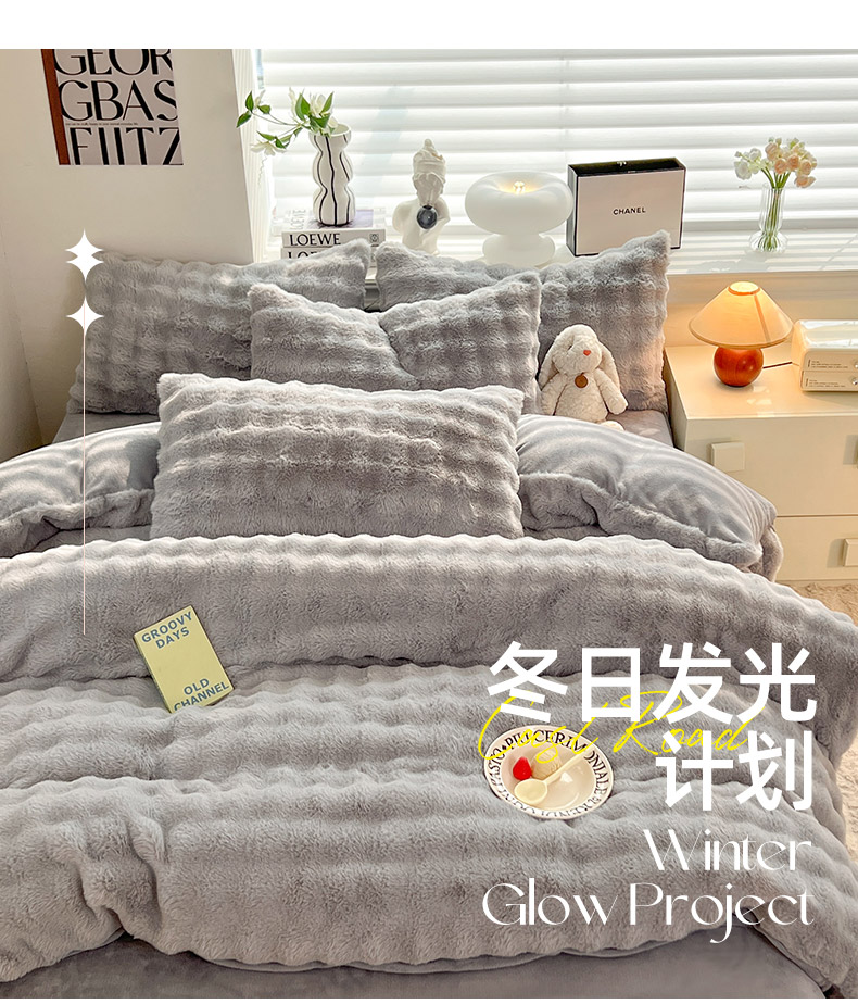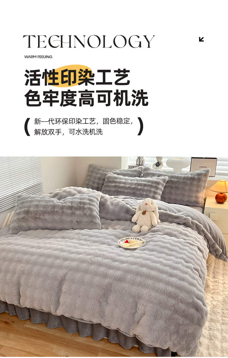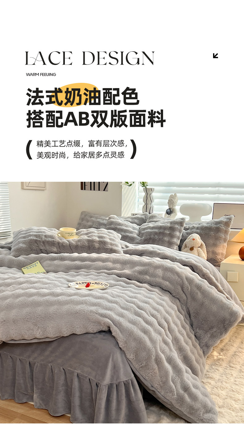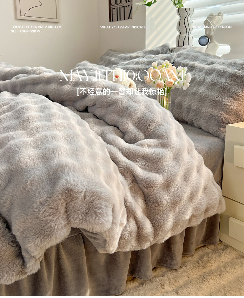 欧冠家纺 2024秋冬新款纯色泡泡绒和七彩泡泡床裙款四件套 泡泡-高级灰