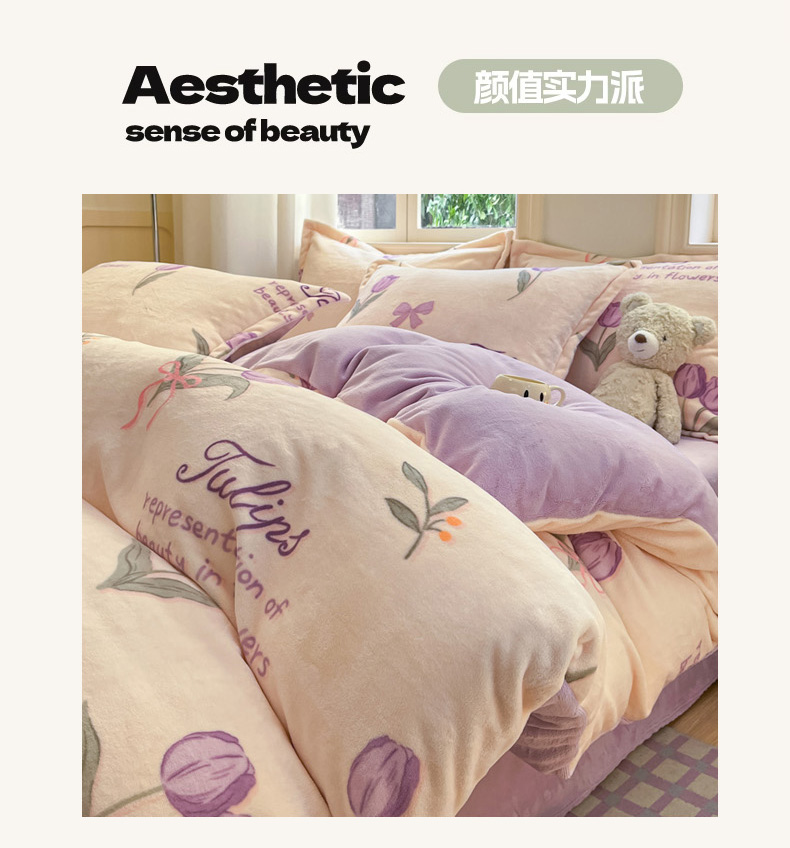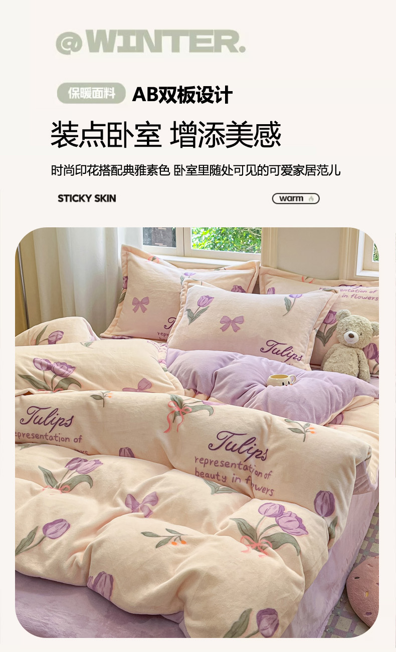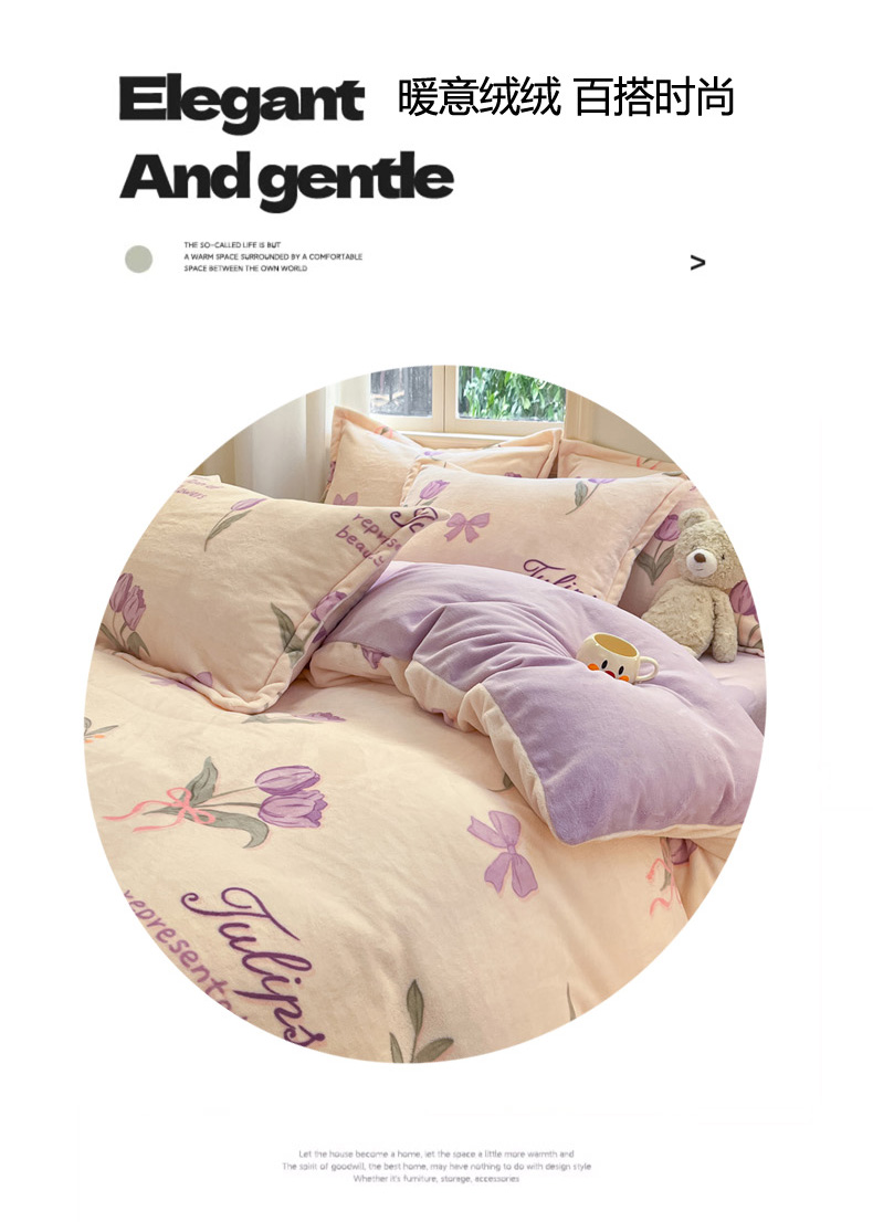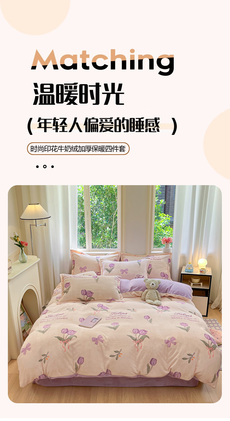 当前位置: 91家纺网 > 商品网购 > 床品套件 > 四件套 > 牛奶绒四件套 > 沐慕 2024新款200g加厚牛奶绒四件套 紫色郁金香