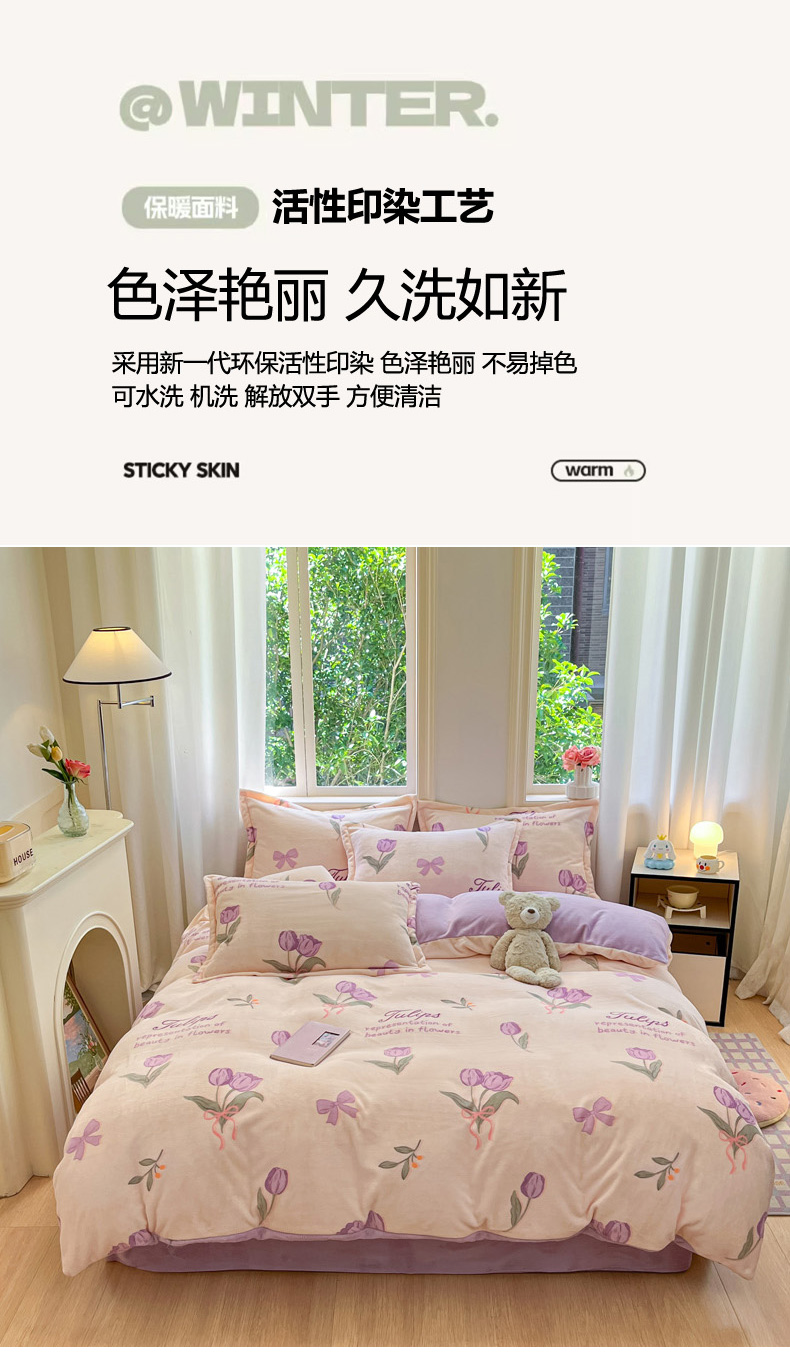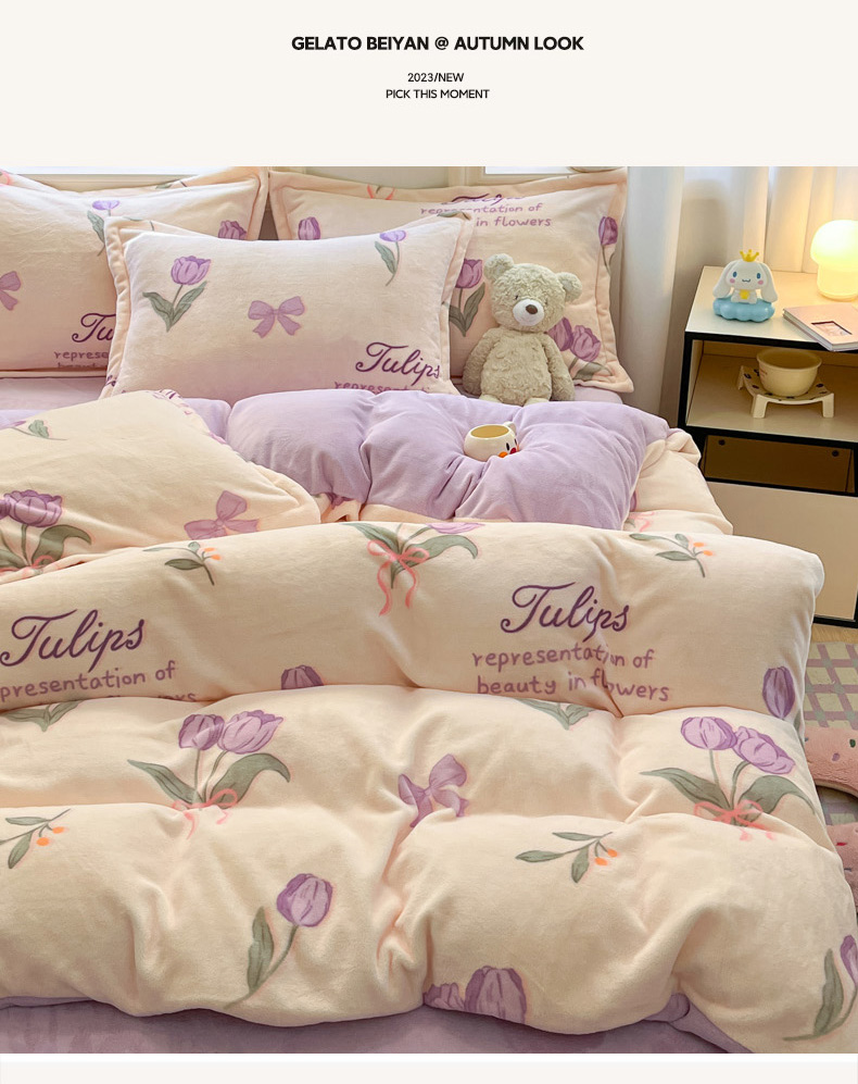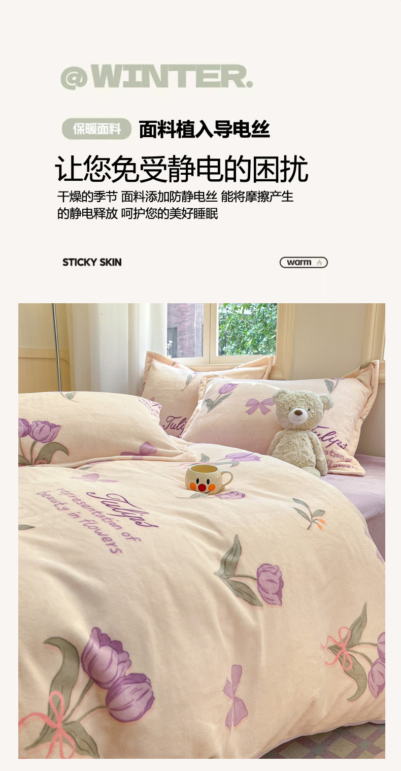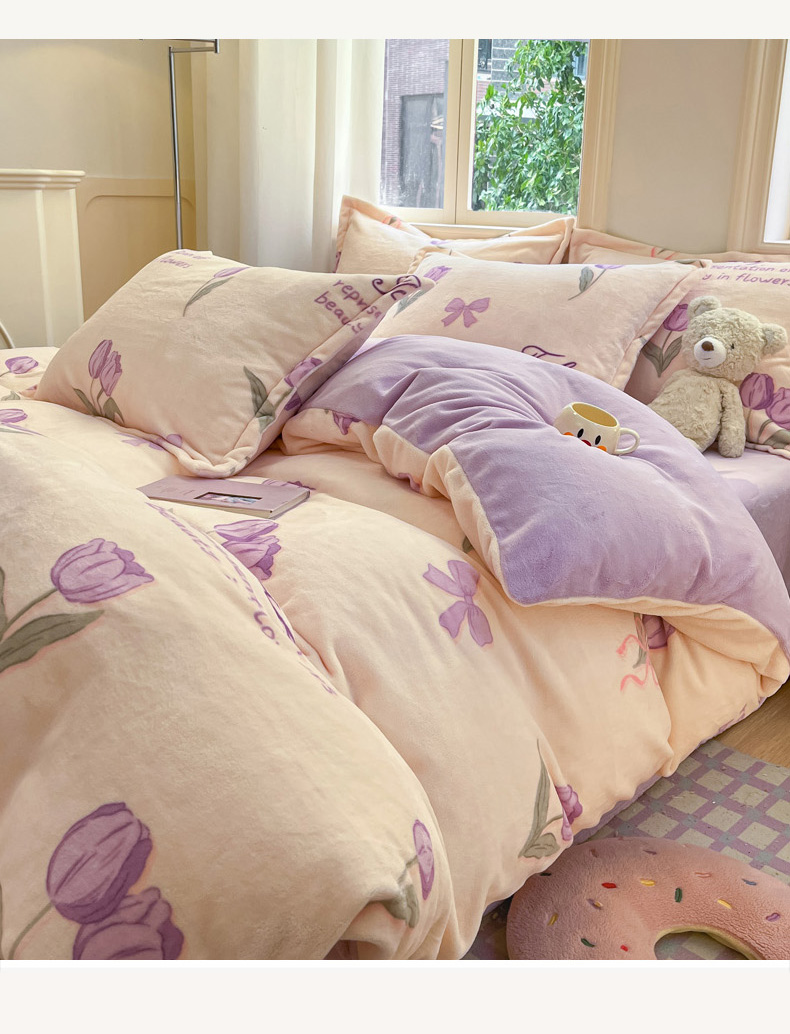 当前位置: 91家纺网 > 商品网购 > 床品套件 > 四件套 > 牛奶绒四件套 > 沐慕 2024新款200g加厚牛奶绒四件套 紫色郁金香