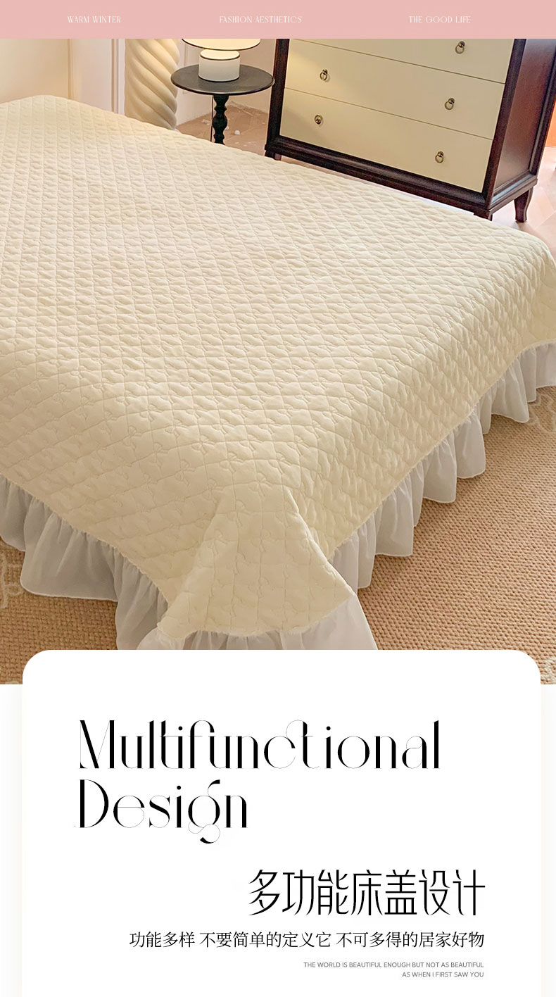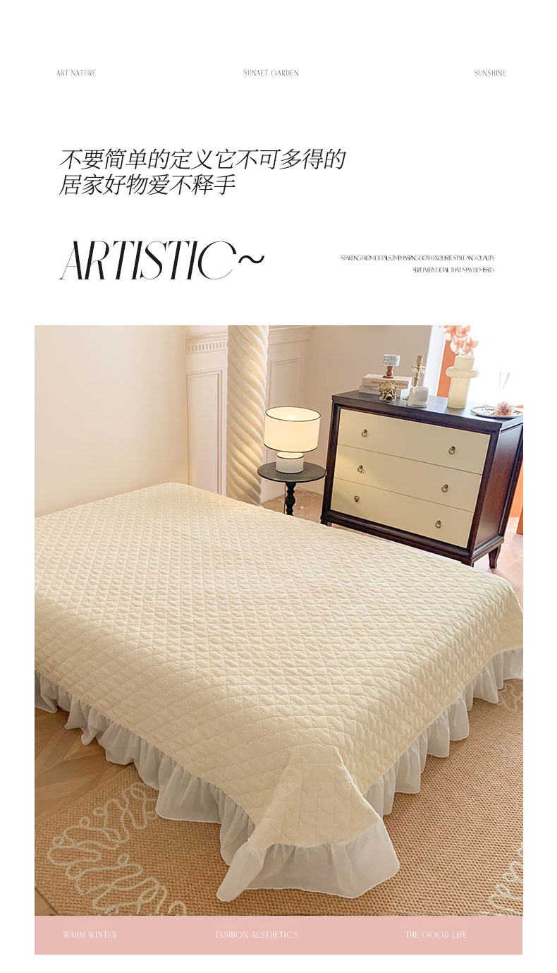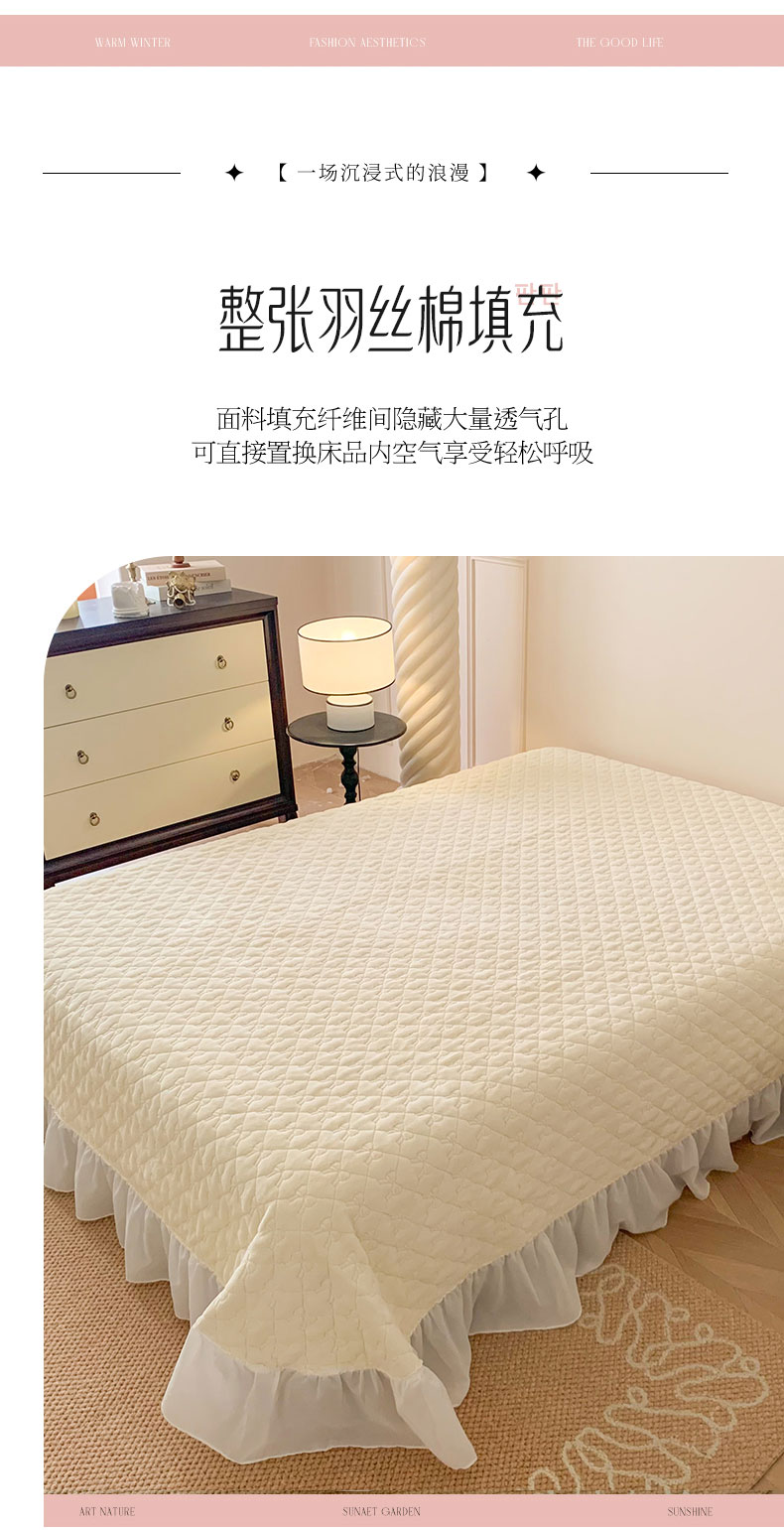 (总)吾欢心 2025新款公主风雪纺边四季通用夹棉床盖,床盖白,床盖粉,床盖黄,床盖咖,床盖绿,床盖抹茶绿,床盖紫
