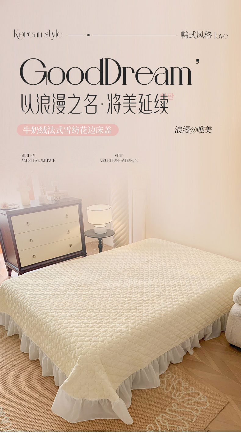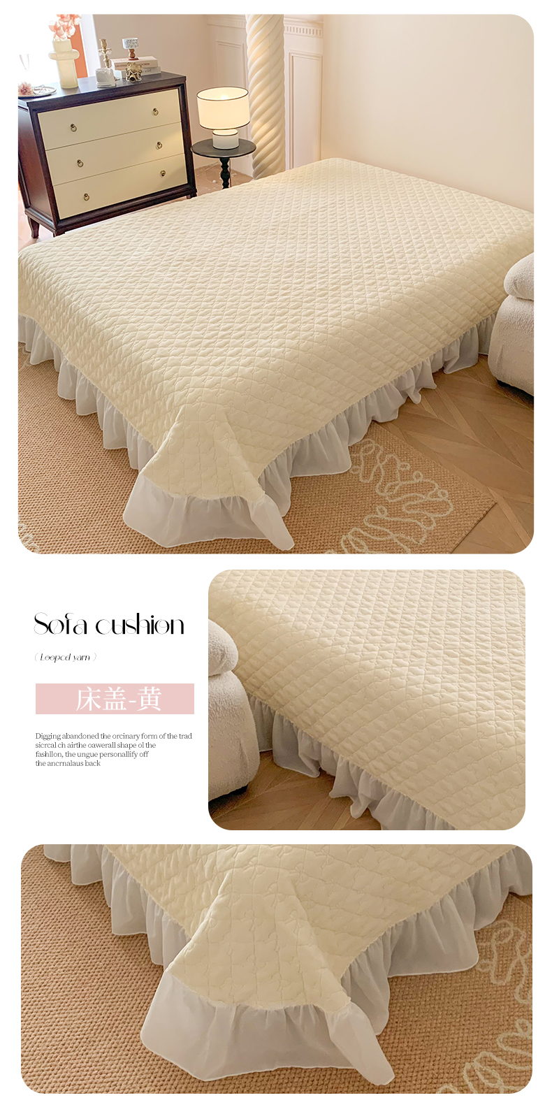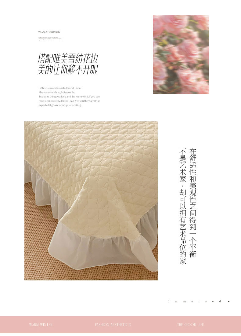 (总)吾欢心 2025新款公主风雪纺边四季通用夹棉床盖,床盖白,床盖粉,床盖黄,床盖咖,床盖绿,床盖抹茶绿,床盖紫