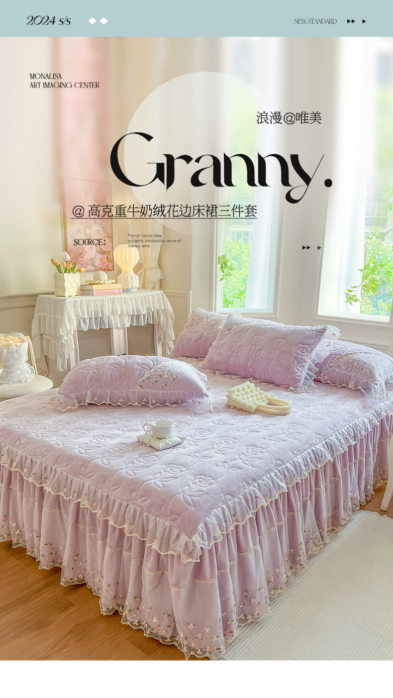 (总)网红馆(ck家纺) 2025新款高克重牛奶绒床裙四件套-卡妮娜系列,卡妮娜-粉色,卡妮娜-灰色,卡妮娜-卡其,卡妮娜-绿色,卡妮娜-米色
