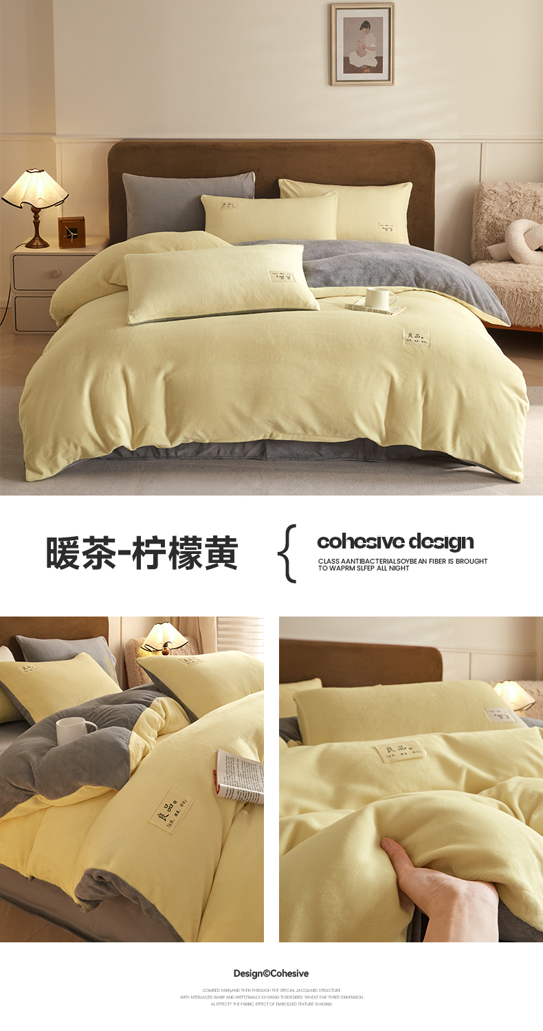 当前位置: 91家纺网 > 商品网购 > 床品套件 > 四件套 > 牛奶绒四件套 > 澳梵家居 2024新款牛奶绒素色双拼四件套--【暖茶系列】 暖茶-柠檬黄