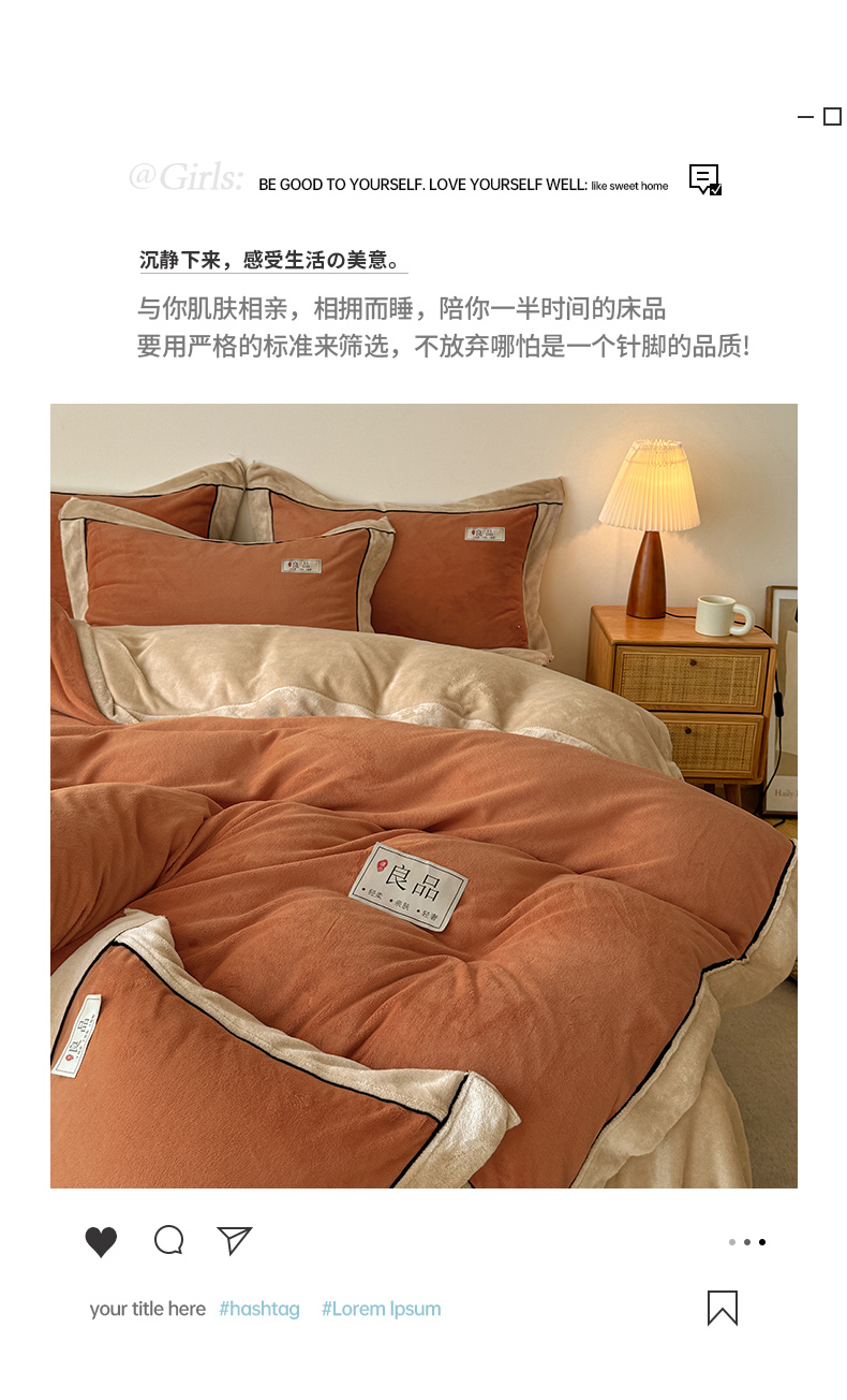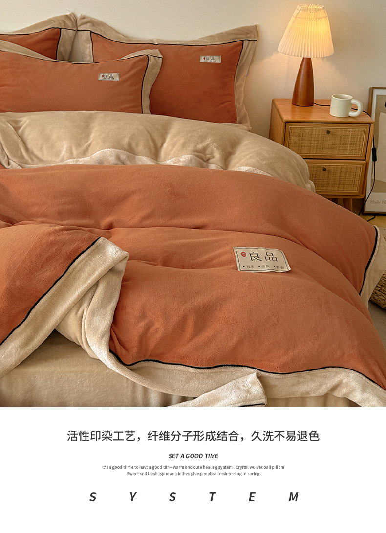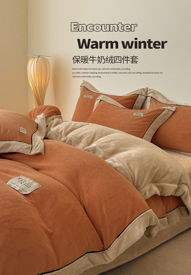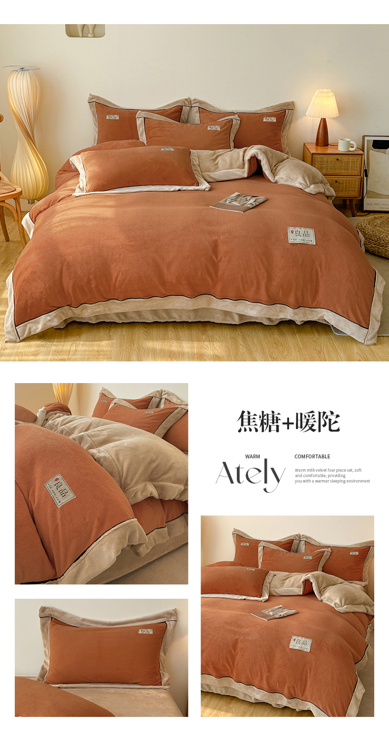 当前位置: 91家纺网 > 商品网购 > 床品套件 > 四件套 > 牛奶绒四件套 > 全季家居 2024新款A类良品纯色双拼牛奶绒高克重加厚保暖四件套 焦糖+暖陀