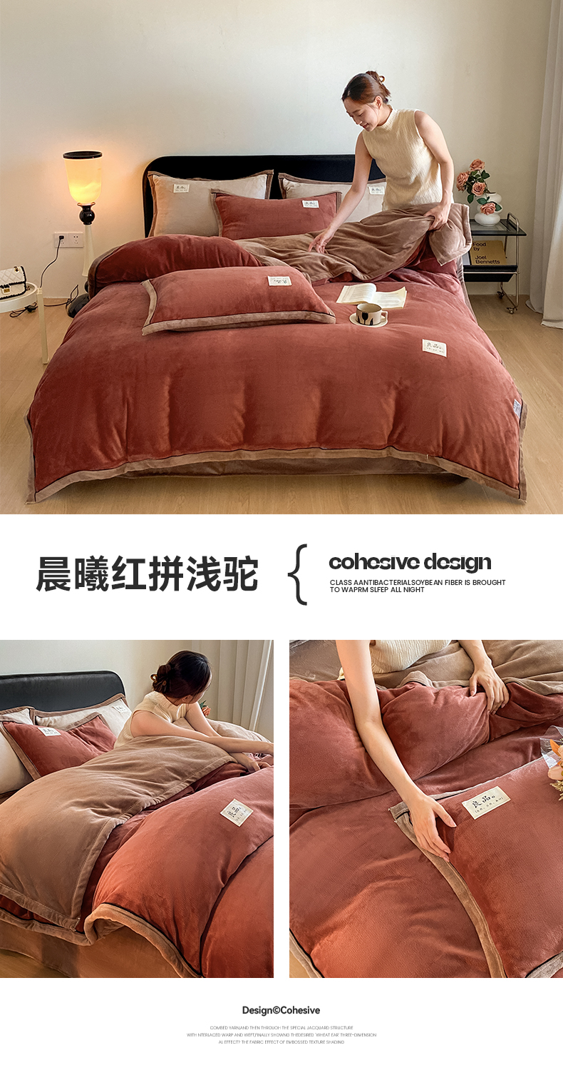 当前位置: 91家纺网 > 商品网购 > 床品套件 > 四件套 > 牛奶绒四件套 > 澳梵家居 2024新款牛奶绒包边嵌绳款双拼四件套 晨曦红拼浅驼