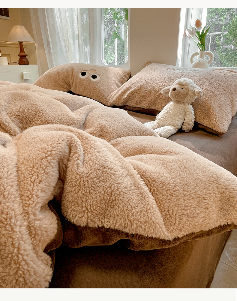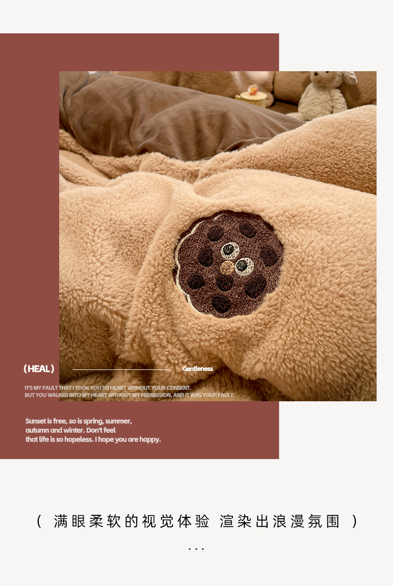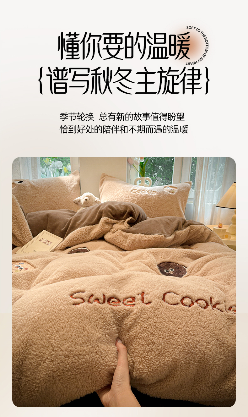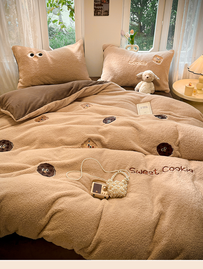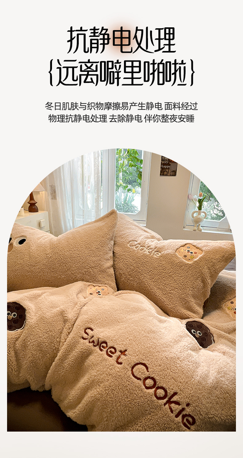 商品名称:满座家居 2025新款绵羊绒牛奶绒绣花小清新四件套 黑黑豆豆