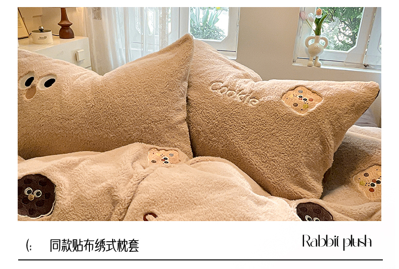 (总)满座家居 2025 热款兔兔绒兔毛绒绣花四件套牛奶绒条纹四件套,嗨嗨熊,煤球滚滚,puppy 酱,cookie,天然呆呆,躺平狗