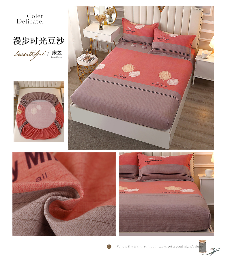 晶缦家纺 2024新款典雅系-全棉活性磨毛多规格单品床笠 漫步时光豆沙