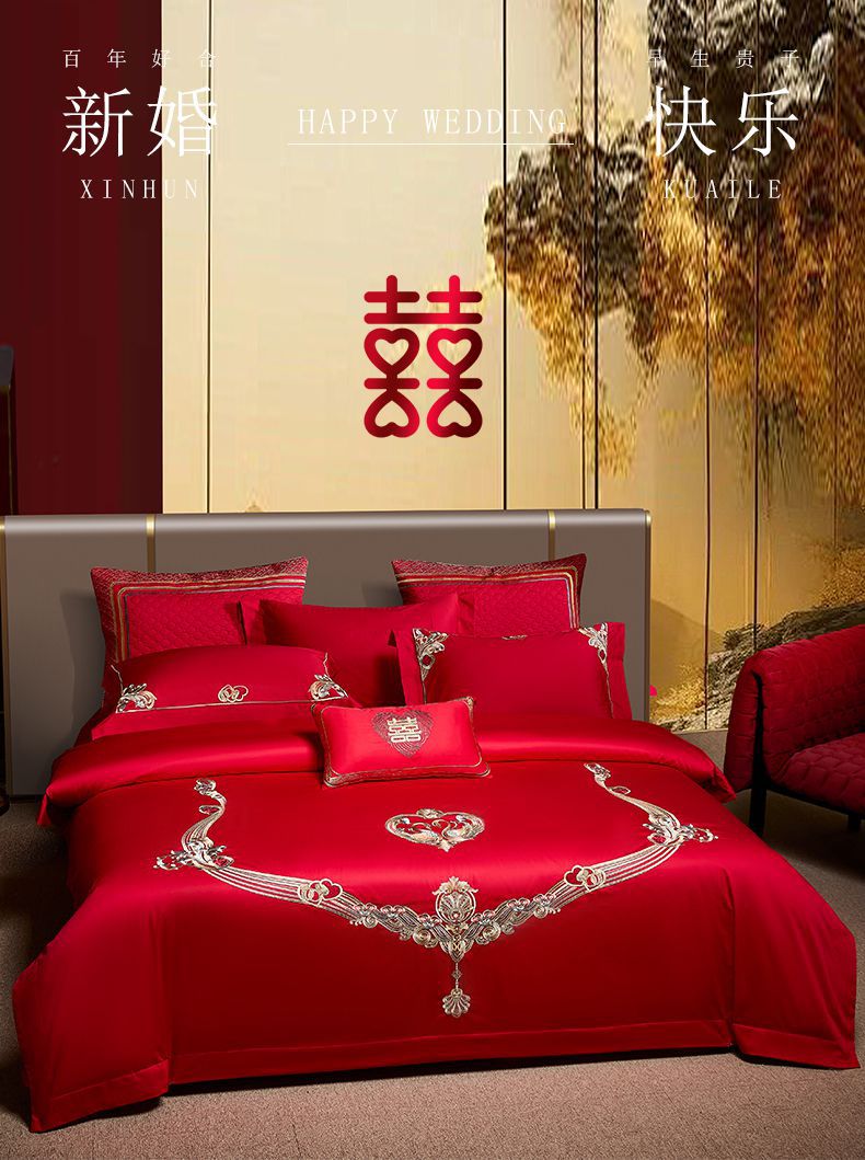 当前位置: 91家纺网 > 商品网购 > 床品套件 > 四件套 > 长绒棉四件套 > 高大尚婚庆馆 2025秋冬新款长绒棉臻棉系列婚庆款多件套 罗曼蒂克