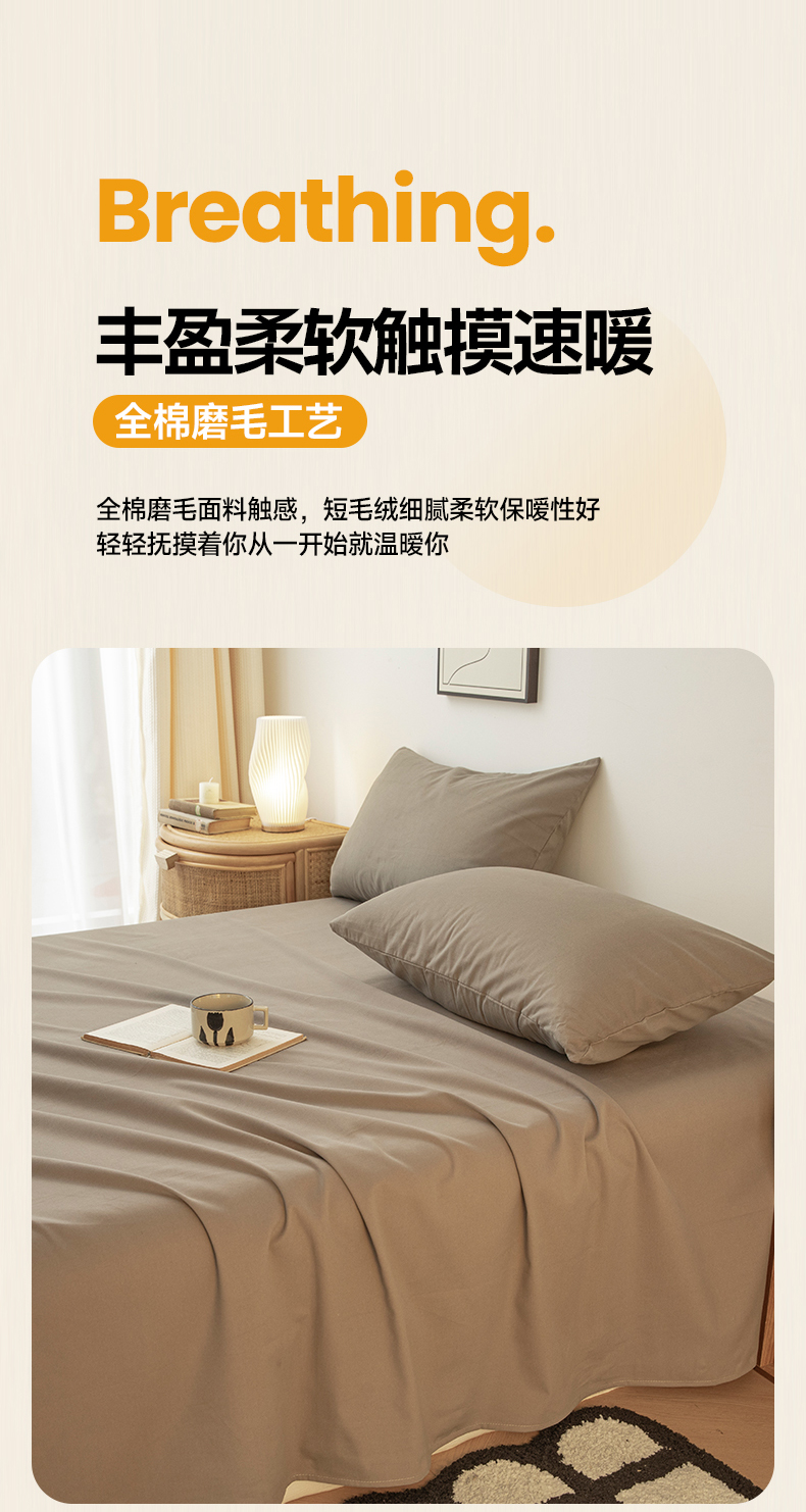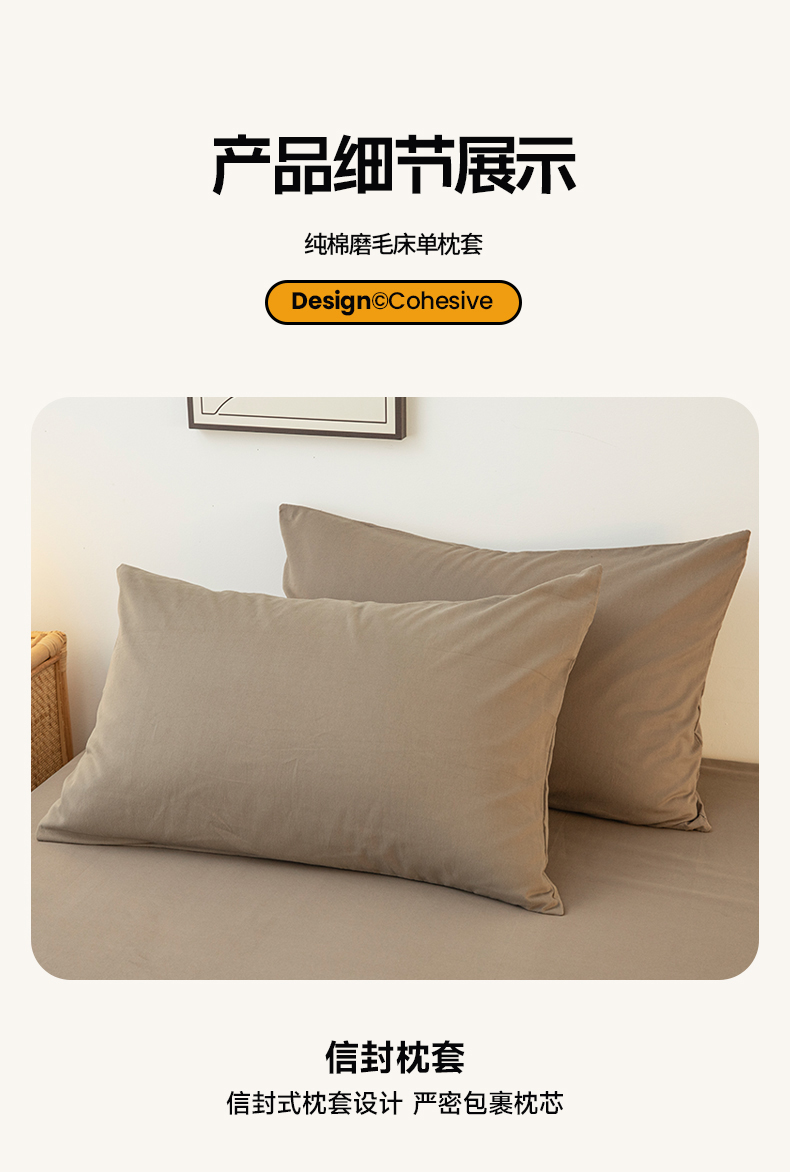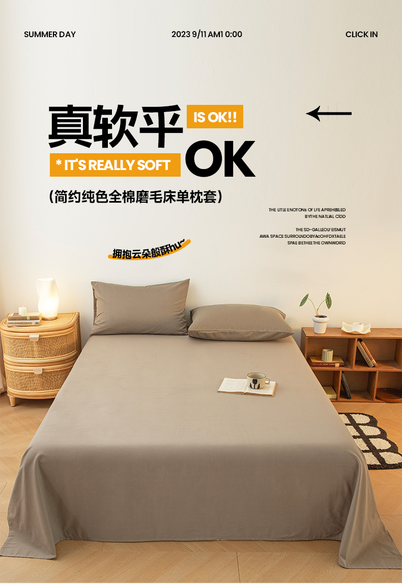 • 91家纺网 家纺一手货源 找家纺 寐眠 2024新款全棉磨毛床单枕套 棕咖色