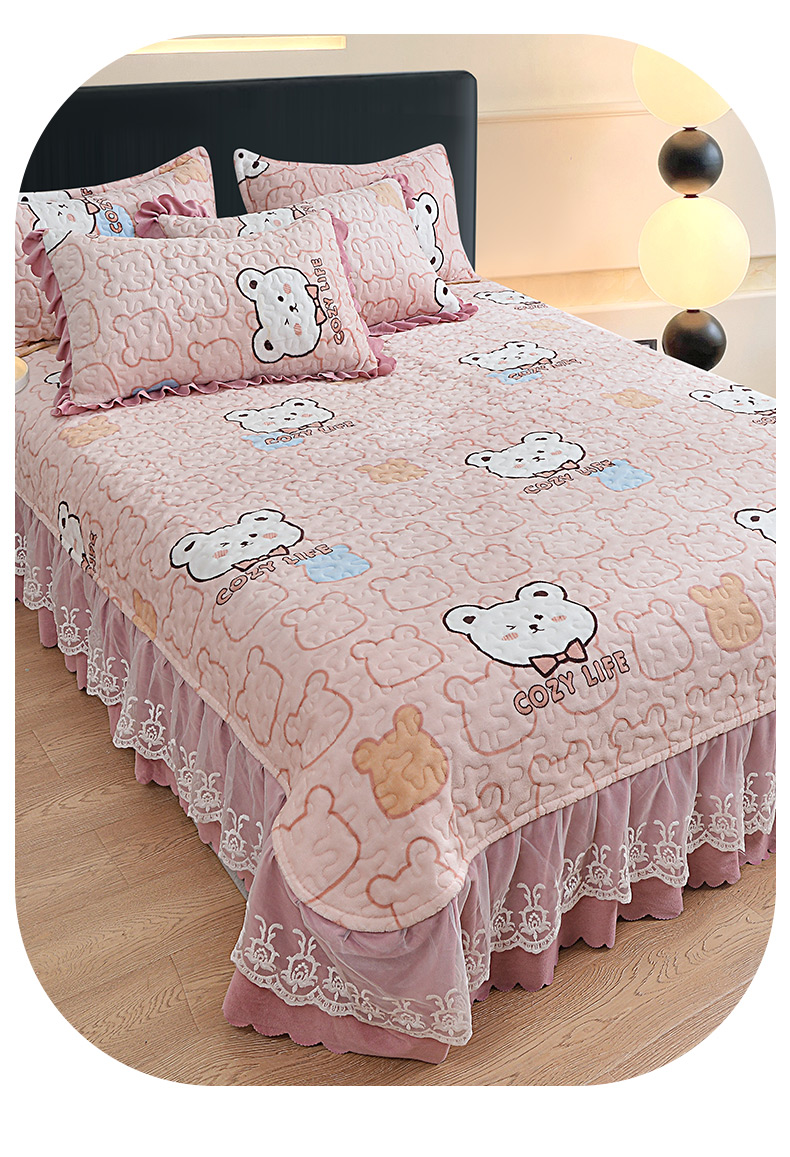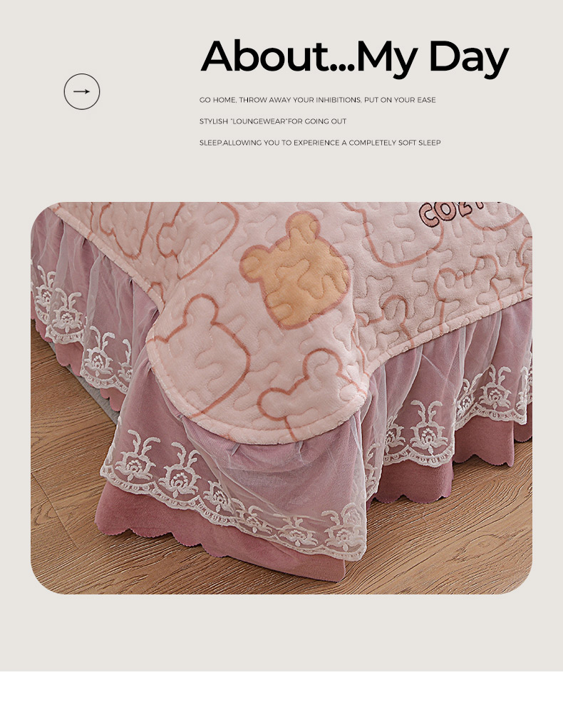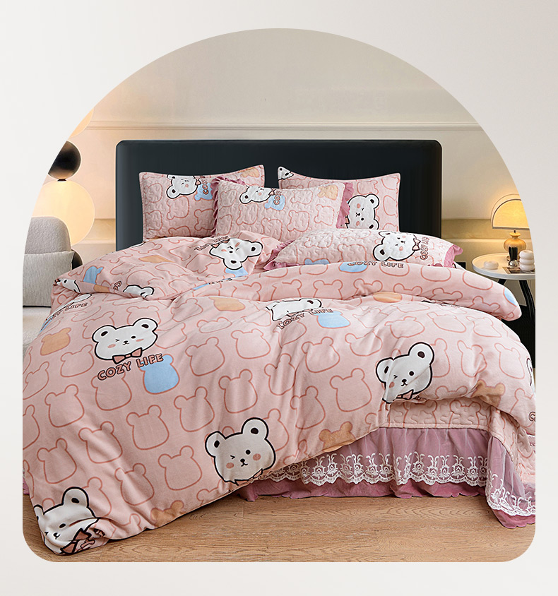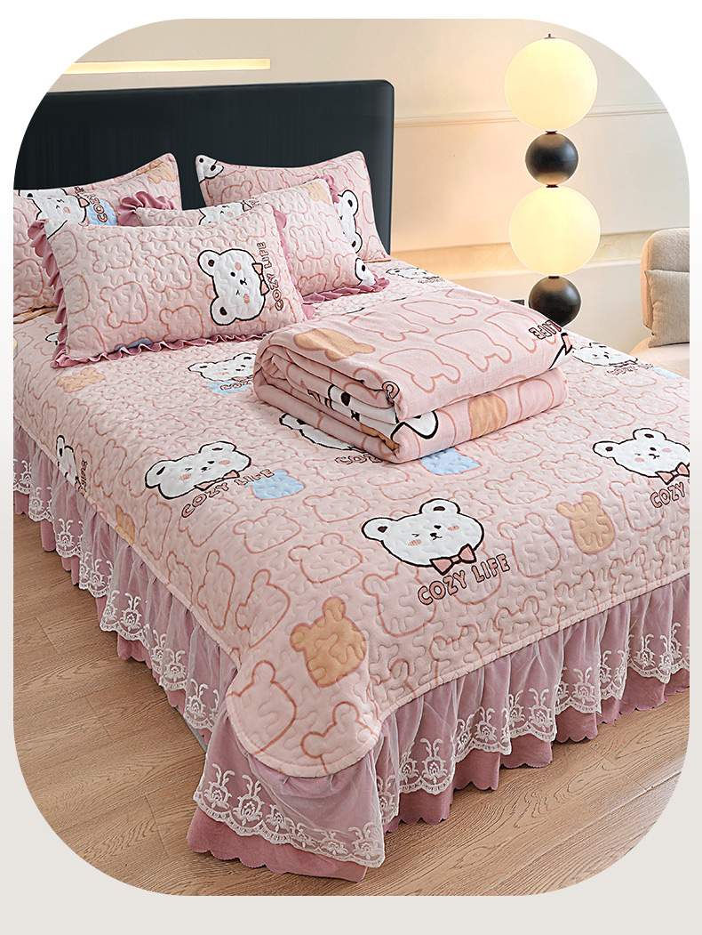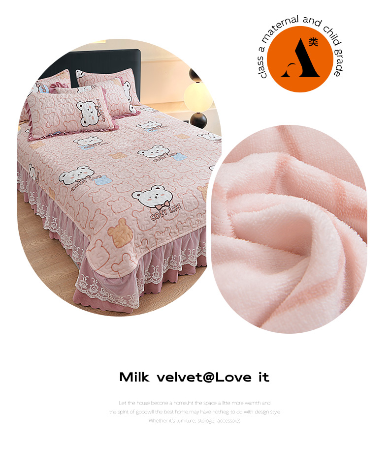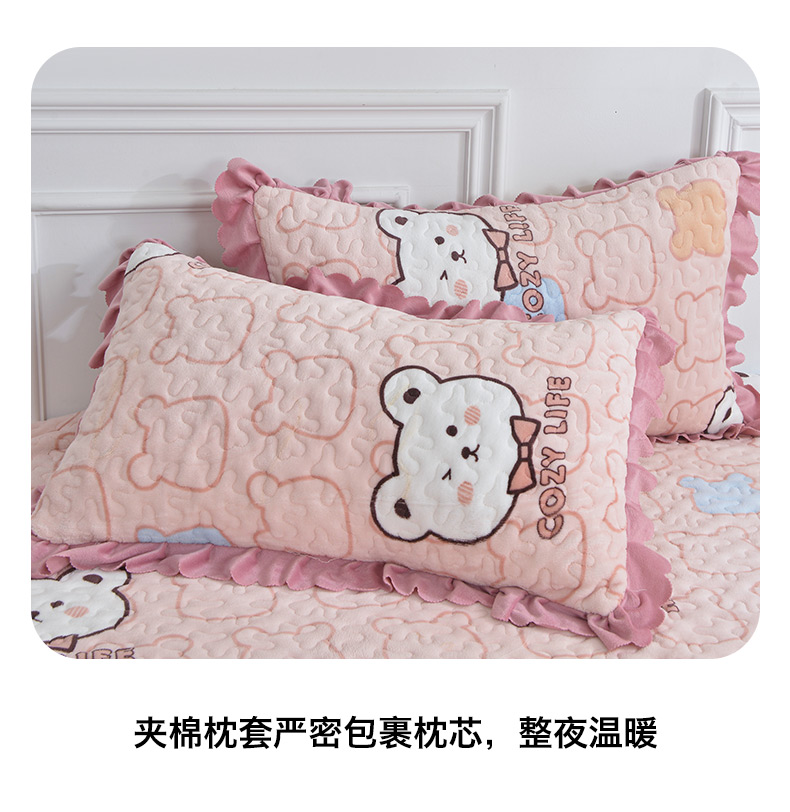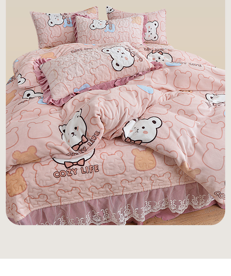 2024新款亲肤牛奶绒夹棉床盖四件套 艾莉熊