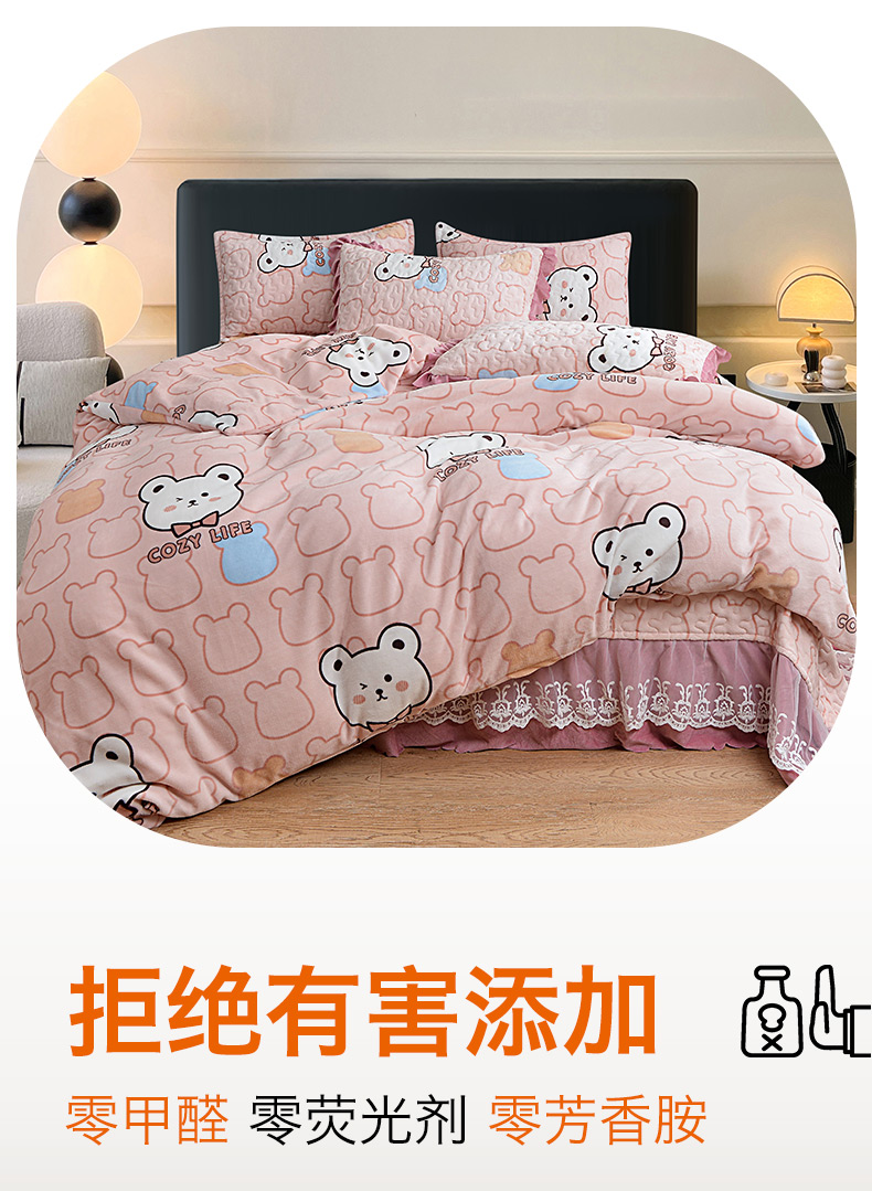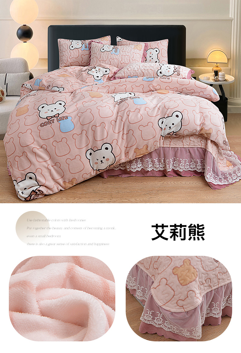 商品名称:2024新款亲肤牛奶绒夹棉床盖四件套 艾莉熊