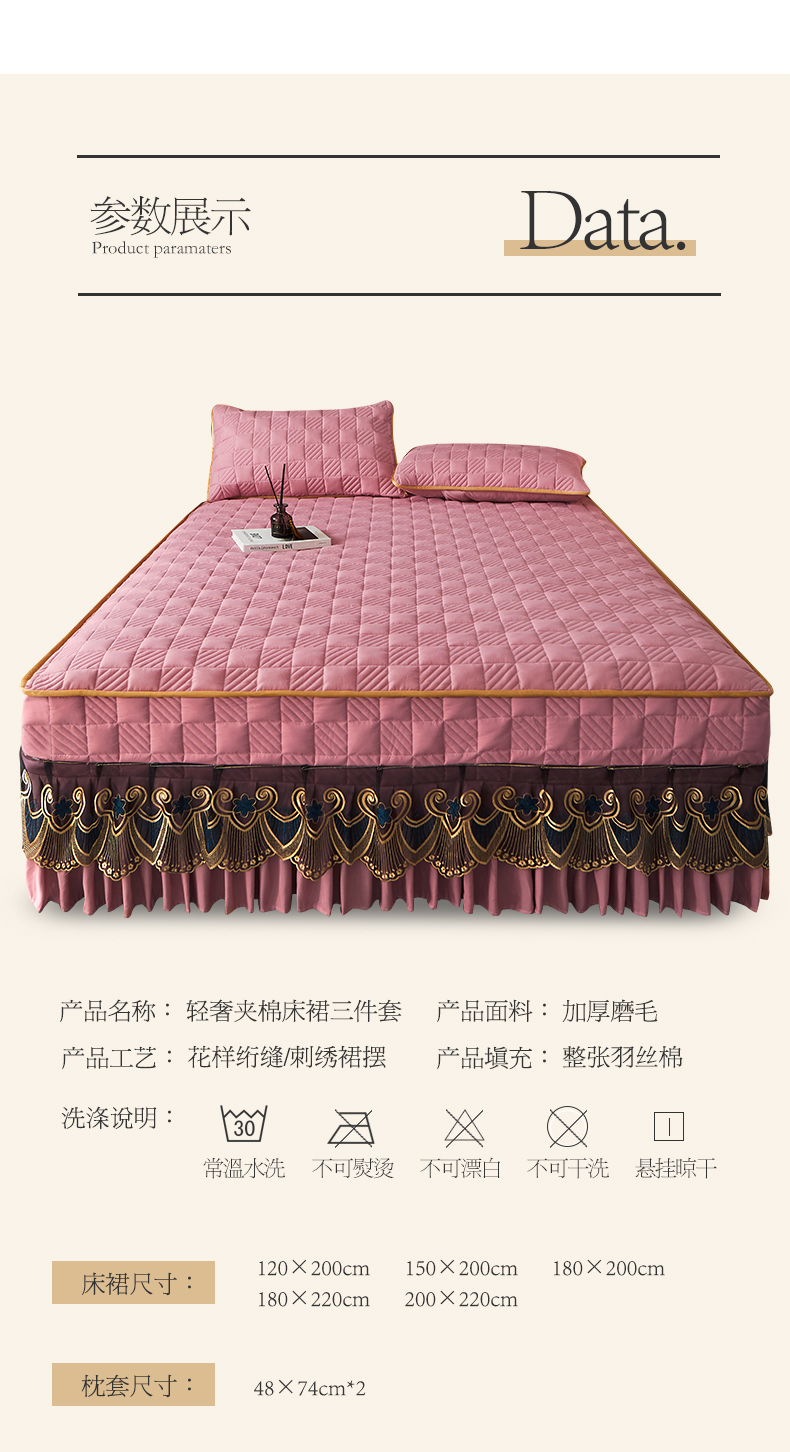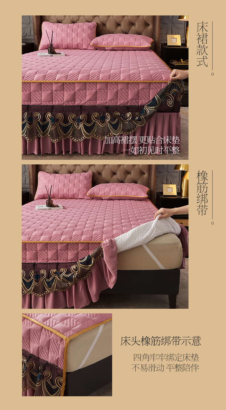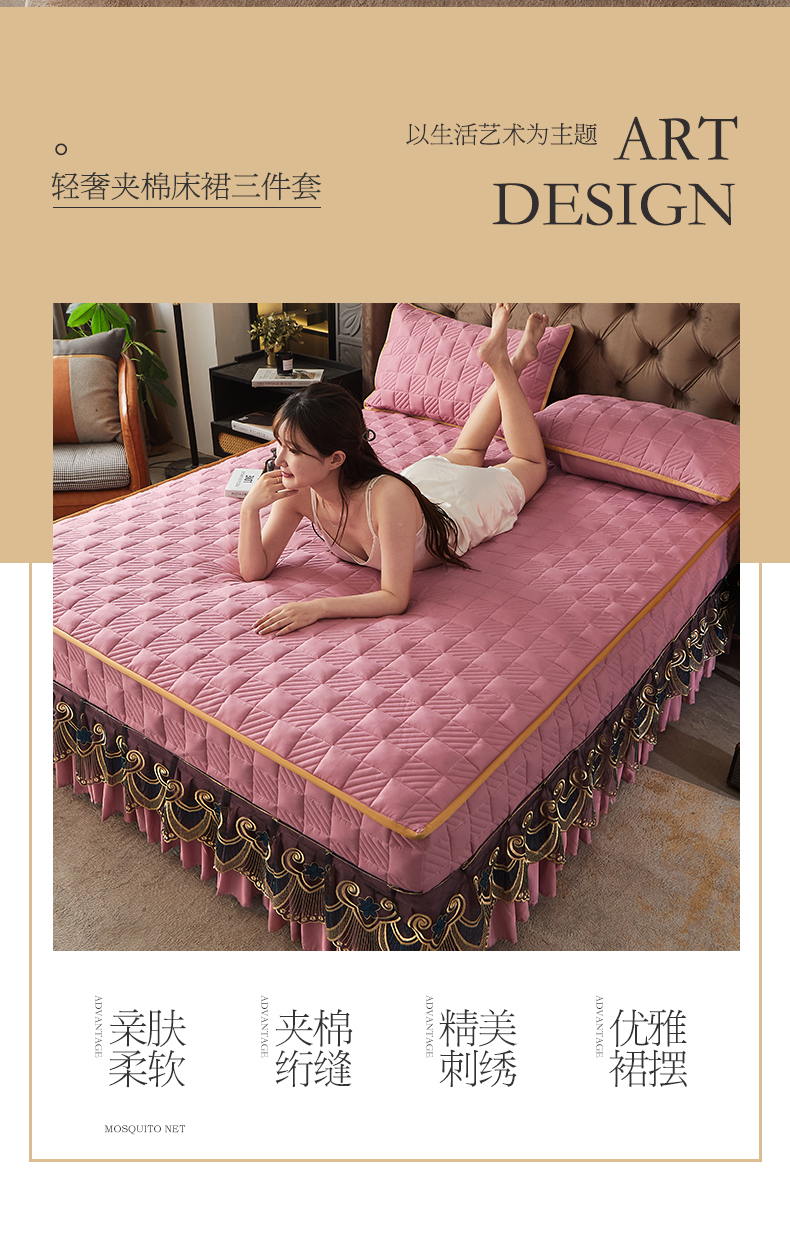 锦逸家居 2024新款加厚磨毛轻奢夹棉床裙床笠三件套系列 佳人-豆沙粉